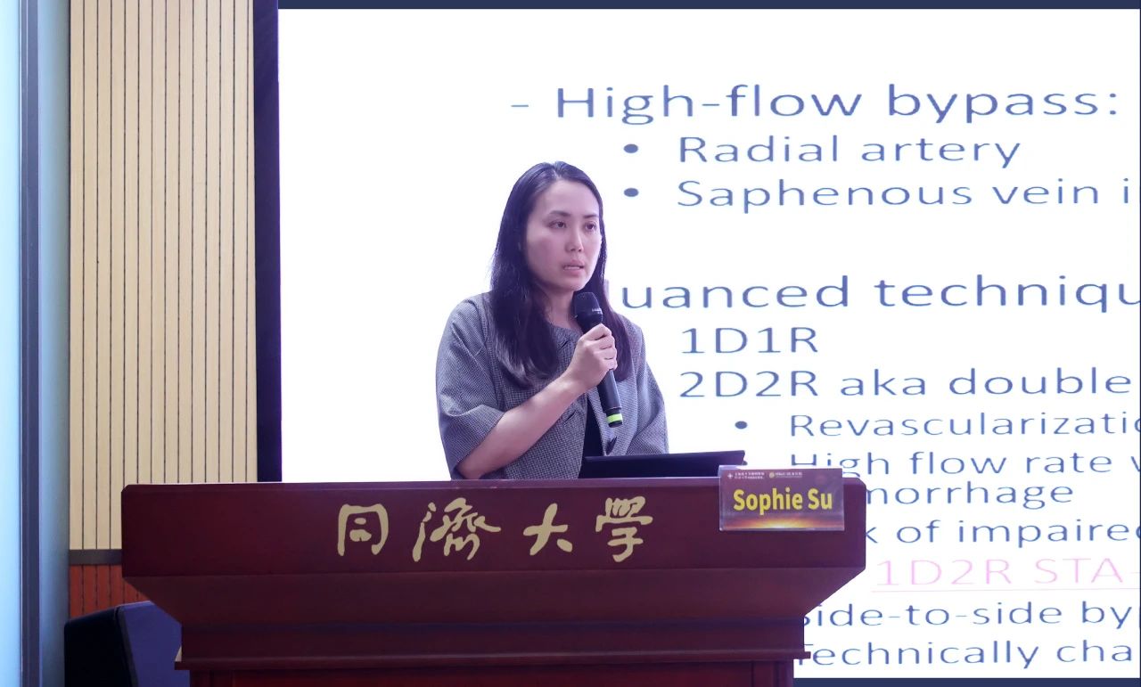 Sophie Su博士作“煙霧病的迷障”學(xué)術(shù)報告,她詳細(xì)介紹了煙霧病概述、治療目標(biāo)、手術(shù)方案選擇依據(jù)、療效與隨訪等,并重點(diǎn)介紹了直接搭橋、間接搭橋、聯(lián)合搭橋等多種搭橋手術(shù)技術(shù)的可行性、技術(shù)細(xì)節(jié)、臨床應(yīng)用及其優(yōu)缺點(diǎn)等,提升了大家對煙霧病的認(rèn)識,拓展了臨床診療思路。