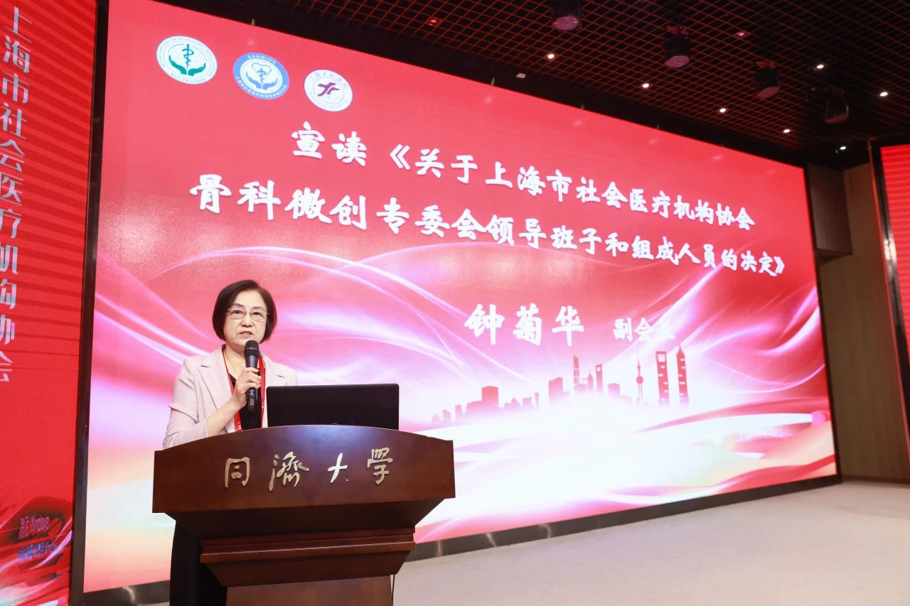 在成立儀式上,上海市社會醫(yī)療機構協(xié)會鐘菊華副會長宣讀《關于上海市社會醫(yī)療機構協(xié)會骨科微創(chuàng)專委會領導班子和組成人員的決定》。毛寧方當選首屆專業(yè)委員會主任委員;邵擎東、陳譽、勞立峰、倪海鍵、王樹強等16人當選副主任委員;李小龍當選秘書長;羅貝爾、劉璇當選秘書;陳凱等29人當選常務委員;朱宗昊、李陵江、徐凌等78人當選委員。