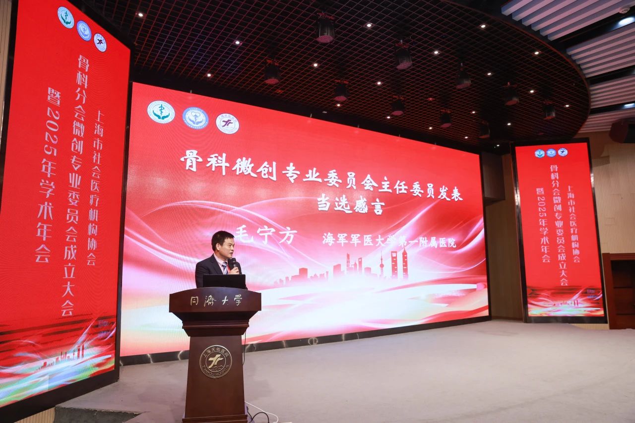 首屆主任委員毛寧方發(fā)表當選感言。他指出,微創(chuàng)技術是現(xiàn)代骨科的重要發(fā)展方向,骨科微創(chuàng)專委會的成立是順應學科發(fā)展的關鍵舉措。未來,在上海市社會醫(yī)療機構協(xié)會領導下,專委會將重點開展三項工作:搭建學術交流平臺、建立操作規(guī)范標準、健全人才培養(yǎng)機制,攜手各成員單位共同促進上海社會辦醫(yī)骨科微創(chuàng)領域的高質(zhì)量發(fā)展。