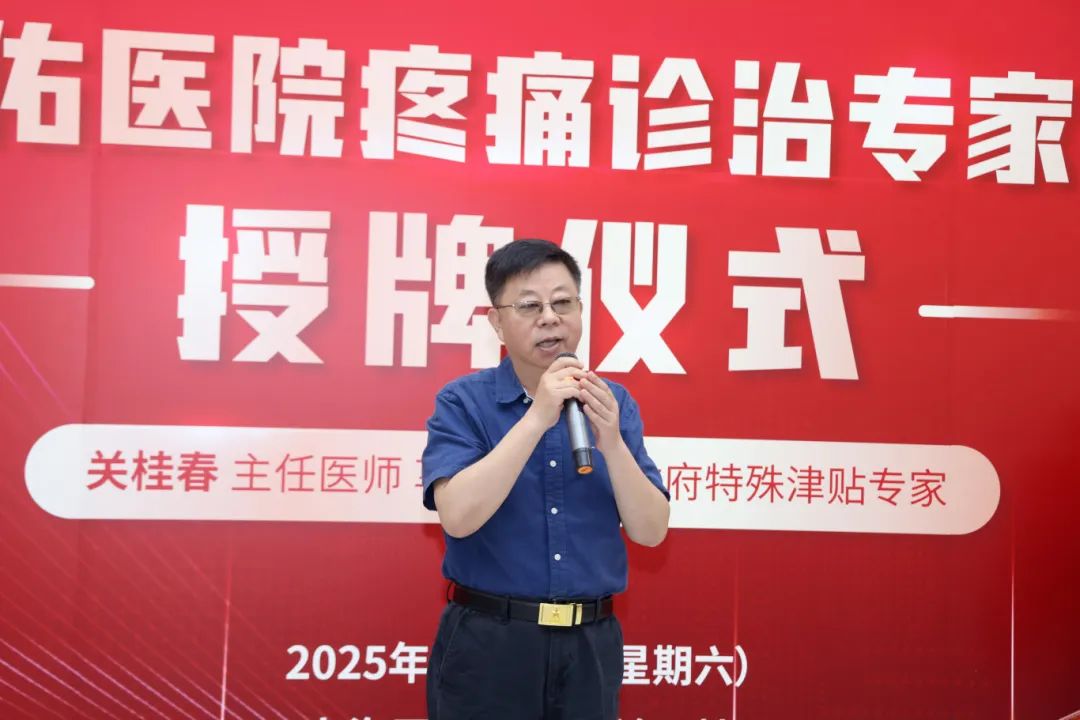 蔡劍飛院長在致辭時高度贊賞了關(guān)桂春教授的專業(yè)水平和奉獻精神。他說,關(guān)教授作為德高望重的資深專家,一直堅守臨床一線,以解除病人疼痛為己任,以精湛的醫(yī)術(shù)和高尚醫(yī)德贏得患者的廣泛贊譽。關(guān)教授嚴謹?shù)脑\療態(tài)度和創(chuàng)新精神在攻克疼痛退行性病變等疑難病癥方面樹立了典范,是全院醫(yī)務(wù)人員的學(xué)習(xí)榜樣。蔡院長強調(diào),全院醫(yī)務(wù)人員要以關(guān)教授為榜樣,在各自的崗位上愛崗敬業(yè),擅于鉆研,持續(xù)提升醫(yī)療服務(wù)質(zhì)量,更好地服務(wù)患者健康。