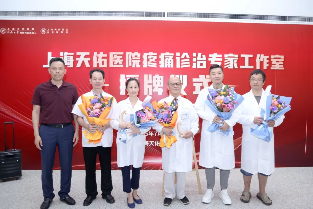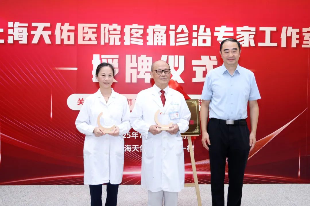 7月19日上午,上海天佑醫(yī)院隆重舉行“關(guān)桂春教授疼痛診治專家工作室”揭牌儀式。公司董事長卓立強、總經(jīng)理劉軼永,上海天佑醫(yī)院院長蔡劍飛、總經(jīng)理卓立峰等領(lǐng)導(dǎo)為工作室揭牌,并分別為關(guān)教授和團隊頒發(fā)證書和獎杯。天佑醫(yī)院執(zhí)行院長王強主持揭牌儀式。百余位社區(qū)居民和關(guān)教授門診當日就診者共同見證這一時刻。