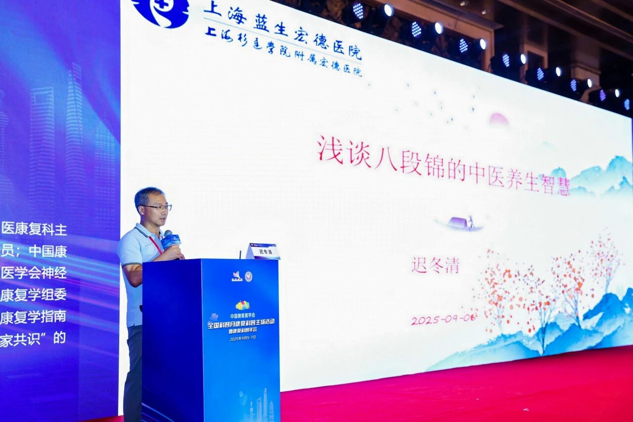 大會(huì)設(shè)立“大咖論壇”,上海藍(lán)生宏德醫(yī)院中醫(yī)康復(fù)科主任遲冬清做了《淺談八段錦的養(yǎng)生智慧》主題演講。遲主任的演講深入淺出,既系統(tǒng)闡述了八段錦作為中華傳統(tǒng)養(yǎng)生瑰寶所蘊(yùn)含的中醫(yī)理論基礎(chǔ),又結(jié)合現(xiàn)代康復(fù)醫(yī)學(xué)理念,科學(xué)論證了其對于調(diào)節(jié)身心、增強(qiáng)免疫力、改善慢性疾病的顯著功效。演講內(nèi)容深入淺出、融貫古今,受到與會(huì)專家的廣泛關(guān)注與好評。