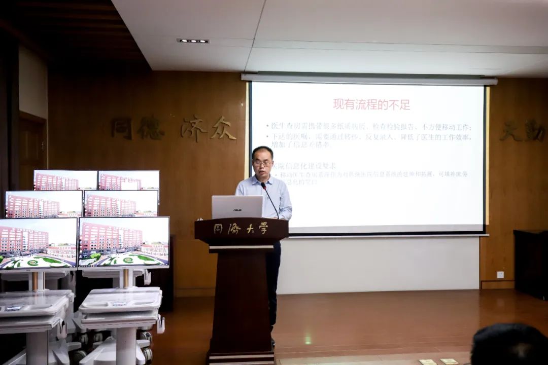 蔡劍飛院長在啟動儀式上表示,“移動醫(yī)療工作站”正式上線是天佑醫(yī)院“智慧醫(yī)院”建設的一個標志,“智慧查房”將給醫(yī)生帶來極大的便利,進一步提升醫(yī)生查房效率和質(zhì)量。蔡院長要求大家通過專項培訓和實際操作,熟練掌握相關(guān)設備和軟件的應用,同時,要有保護意識,醫(yī)院要制定相關(guān)管理辦法,各病區(qū)要有專人管理。蔡院長還就“智慧醫(yī)院”建設整體規(guī)劃作了介紹。