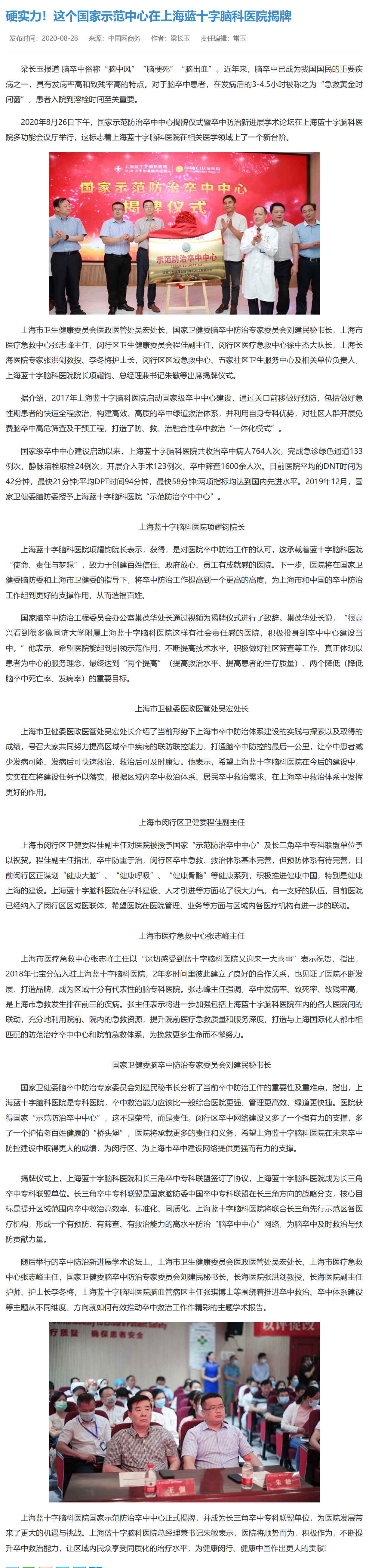 2020年8月26日下午,國家示范防治卒中中心揭牌儀式暨卒中防治新進展學(xué)術(shù)論壇在上海藍十字腦科醫(yī)院多功能會議廳舉行,這標志著上海藍十字腦科醫(yī)院在相關(guān)醫(yī)學(xué)領(lǐng)域上了一個新臺階。