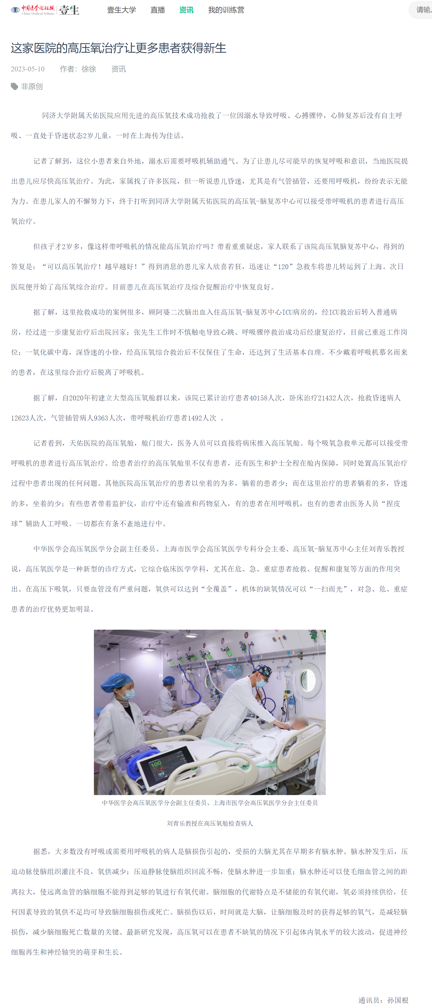 中國(guó)醫(yī)學(xué)論壇報(bào):這家醫(yī)院的高壓氧治療讓更多患者獲得新生