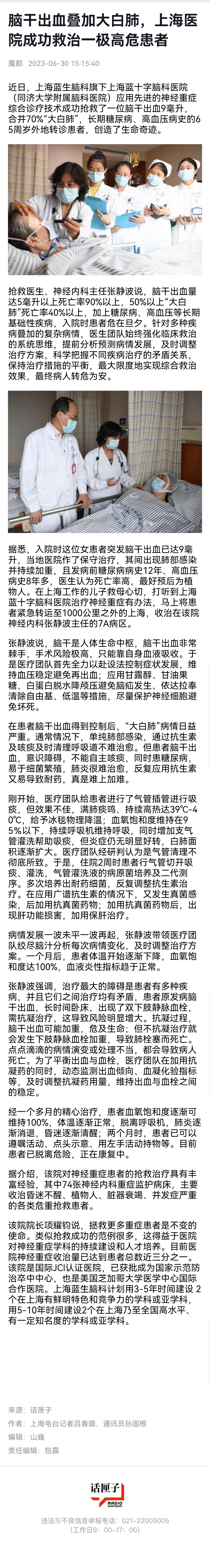 上海人民廣播電視臺(tái):腦干出血疊加大白肺,上海醫(yī)院成功救治一極高危患者