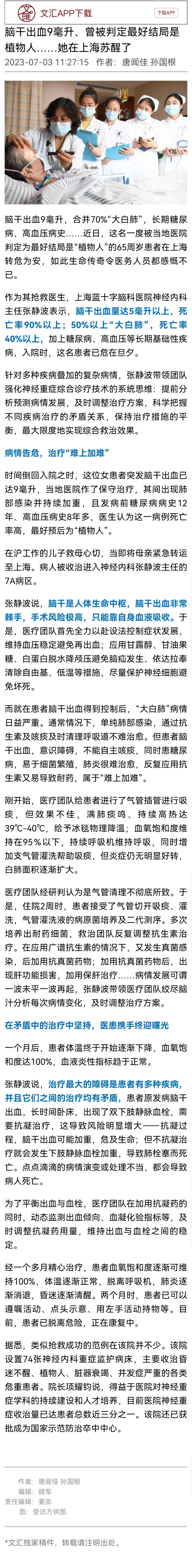 腦干出血9毫升,合并70%“大白肺”,長期糖尿病、高血壓病史……近日,這名一度被當?shù)蒯t(yī)院判定為最好結局是“植物人”的65周歲患者在上海轉危為安,如此生命傳奇令醫(yī)務人員都感慨不已。