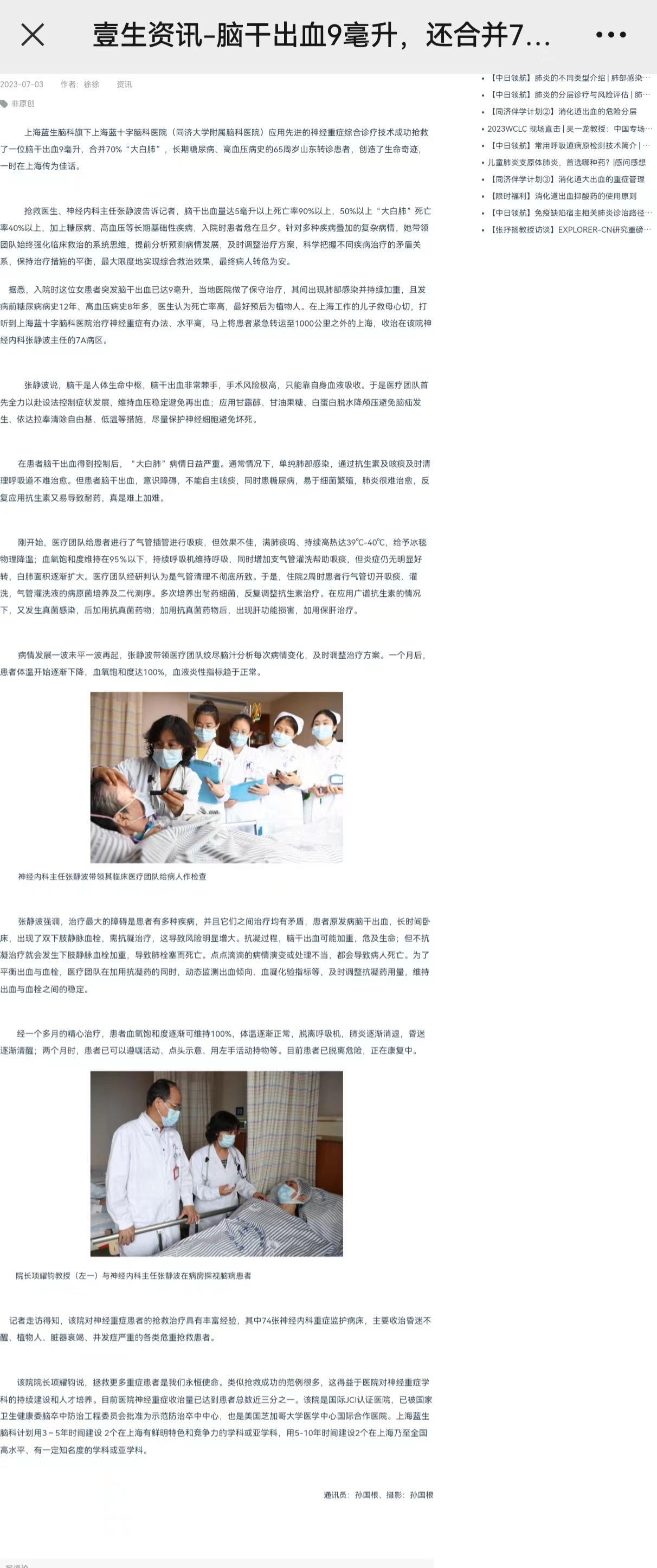中國(guó)醫(yī)學(xué)論壇報(bào):腦干出血9毫升,還合并70%“大白肺”的極高?;颊咴谏虾+@救