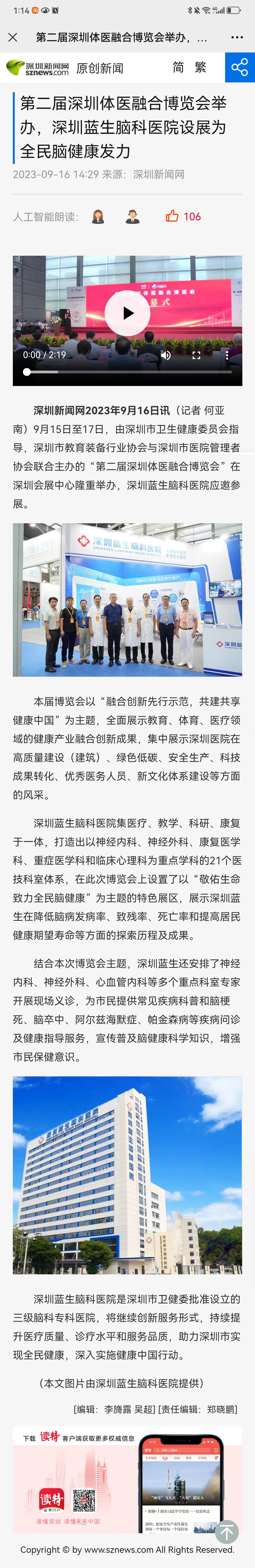 深圳新聞網(wǎng):第二屆深圳體醫(yī)融合博覽會舉辦,深圳藍(lán)生腦科醫(yī)院設(shè)展為全民腦健康發(fā)力