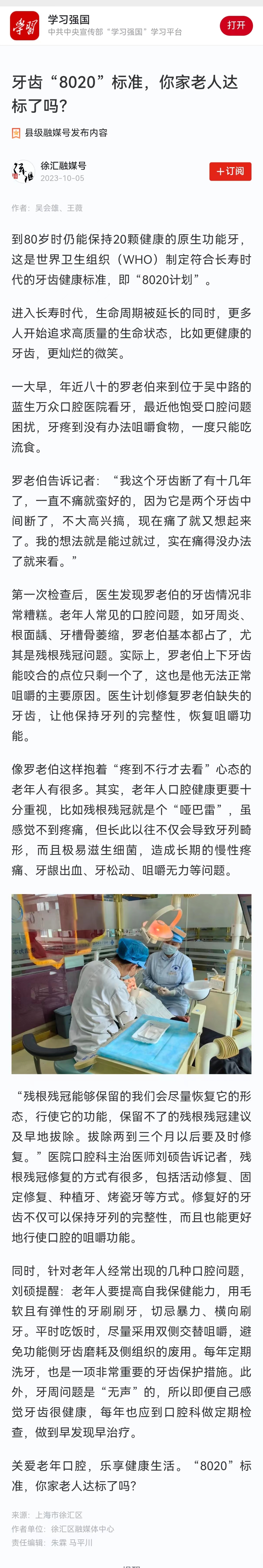 牙齒“8020”標(biāo)準(zhǔn),你家老人達(dá)標(biāo)了嗎?