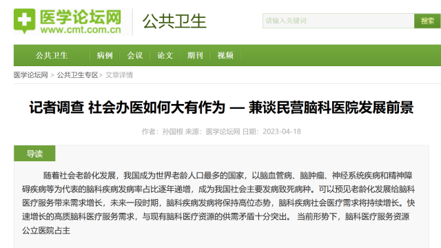 記者調(diào)查 社會(huì)辦醫(yī)如何大有作為 — 兼談民營腦科醫(yī)院發(fā)展前景