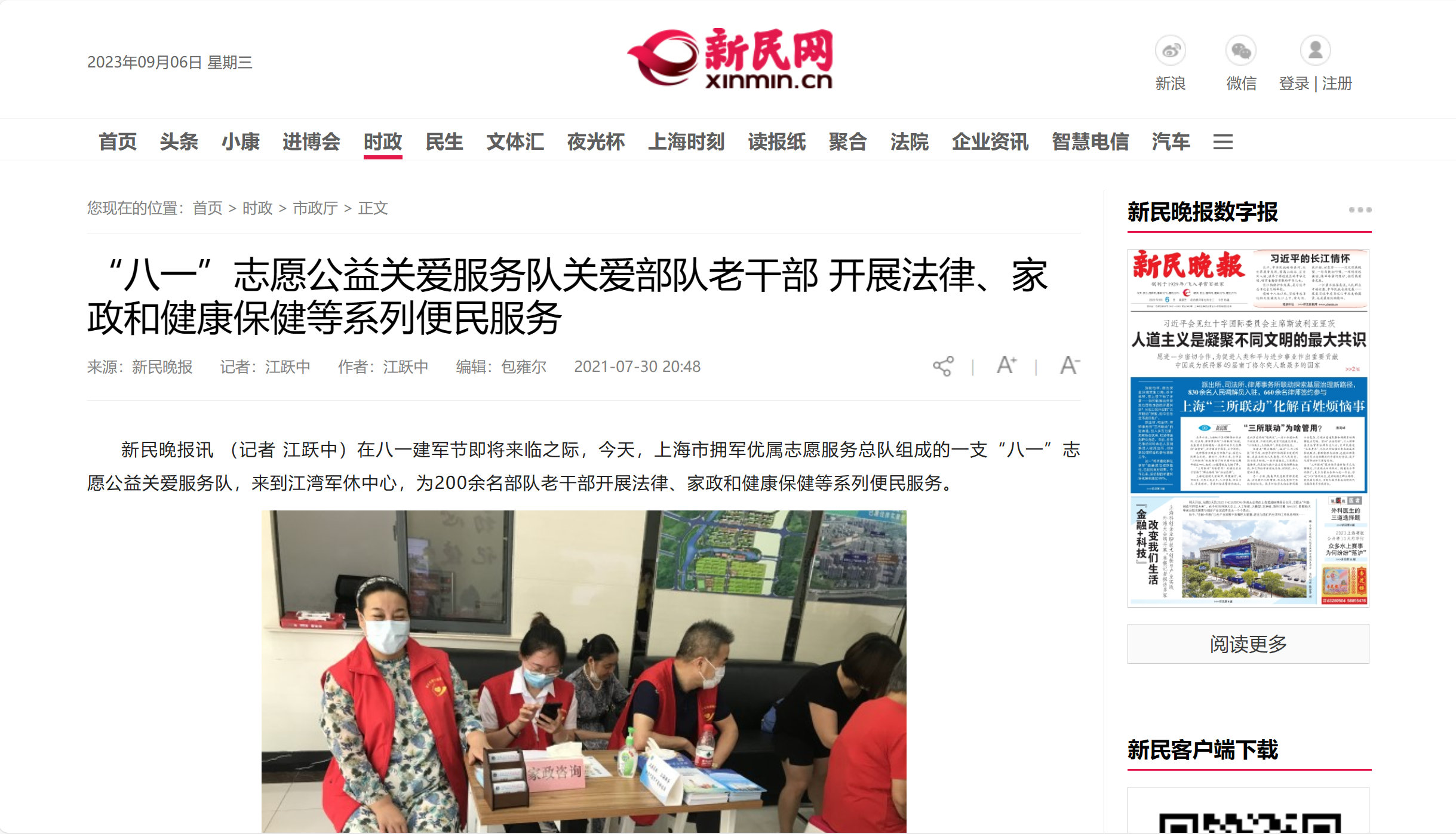 新民網(wǎng):“八一”志愿公益關愛服務隊關愛部隊老干部 開展法律、家政和健康保健等系列便民服務