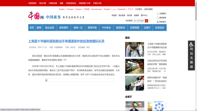 中國網(wǎng)商務:上海藍十字腦科醫(yī)院救治不幸遭遇意外的應急救援隊隊員