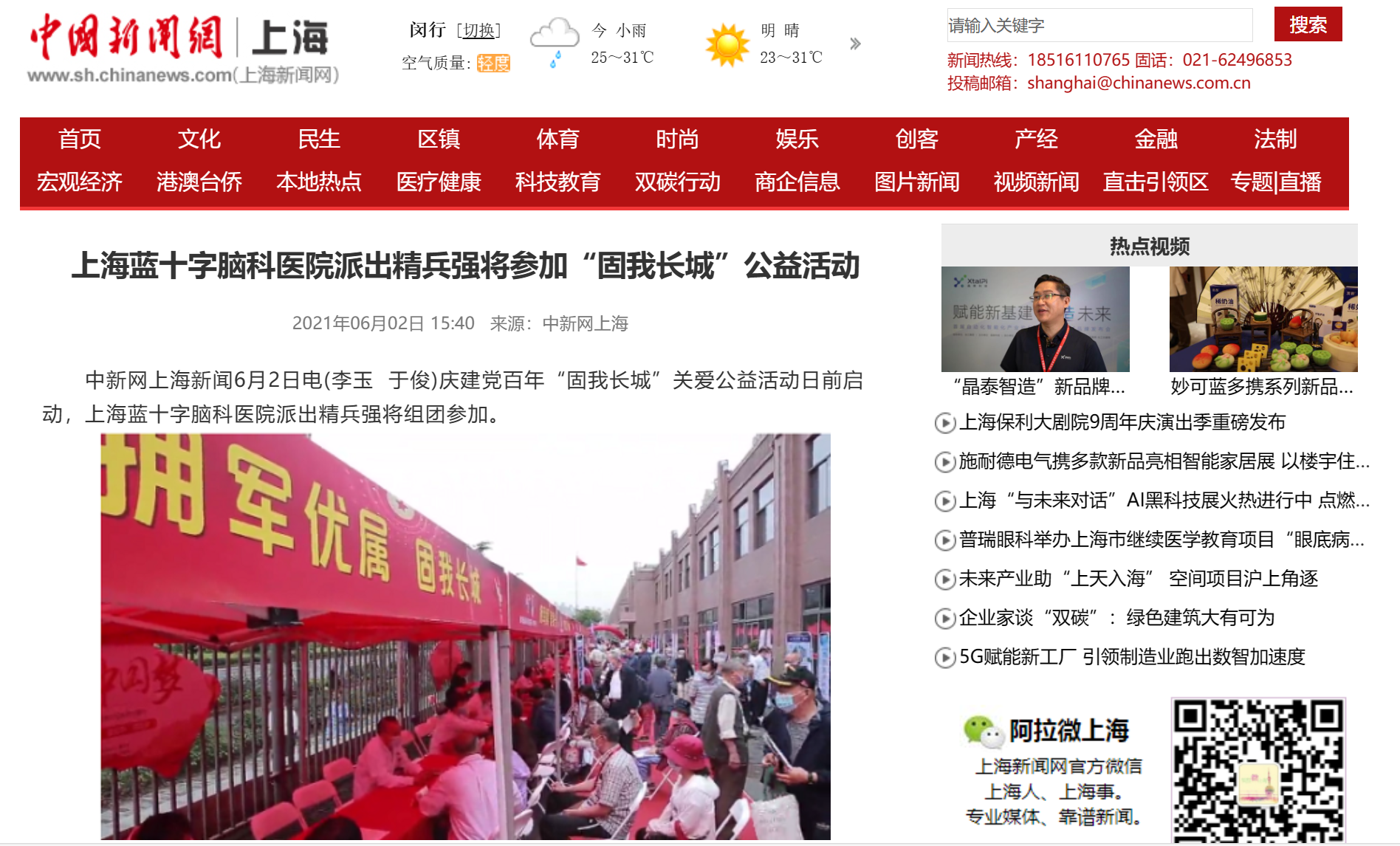 中新網(wǎng)上海:上海藍十字腦科醫(yī)院派出精兵強將參加“固我長城”公益活動