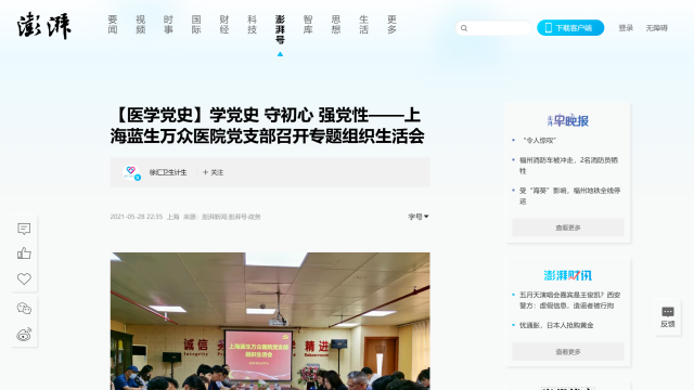 徐匯衛(wèi)生健康、澎湃網(wǎng):上海藍生萬眾醫(yī)院黨支部召開專題組織生活會