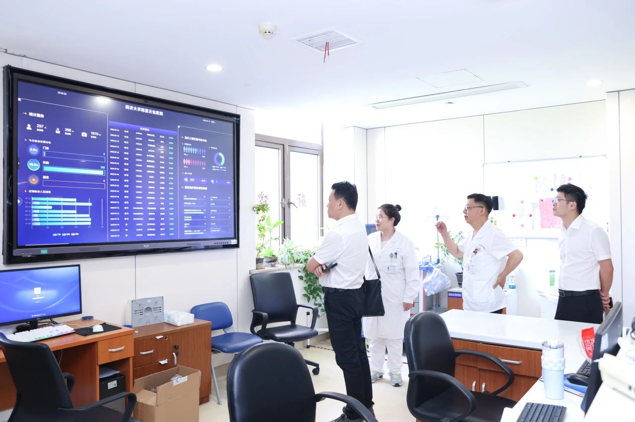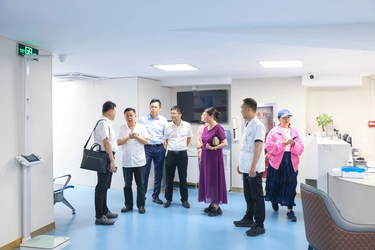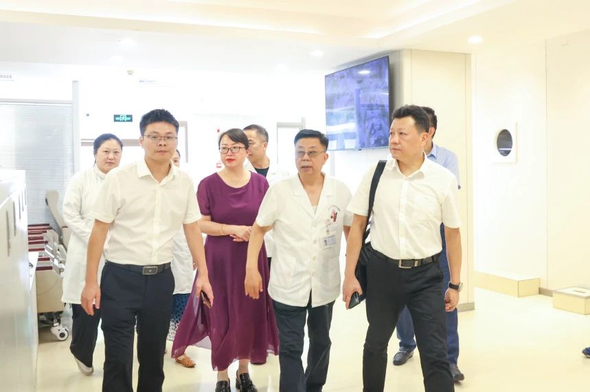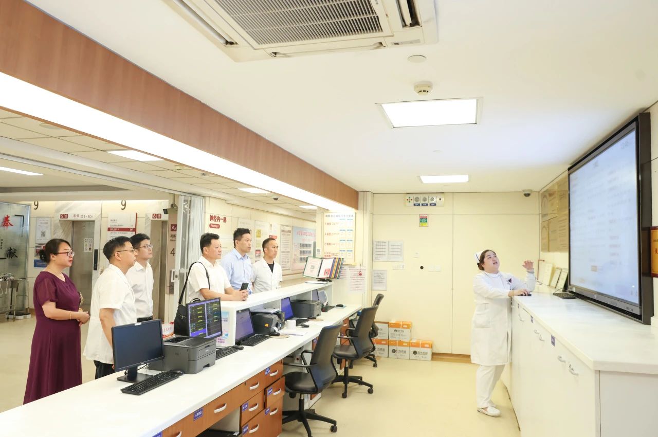 領(lǐng)導(dǎo)們一行先后到放療科、高壓氧艙、NICU、康復(fù)大廳及多個(gè)病區(qū)參觀考察。每到一處,蔡劍飛院長(zhǎng)都進(jìn)行詳細(xì)介紹,讓大家實(shí)地了解醫(yī)院的功能布局、設(shè)備設(shè)施、智慧醫(yī)院建設(shè)等情況。