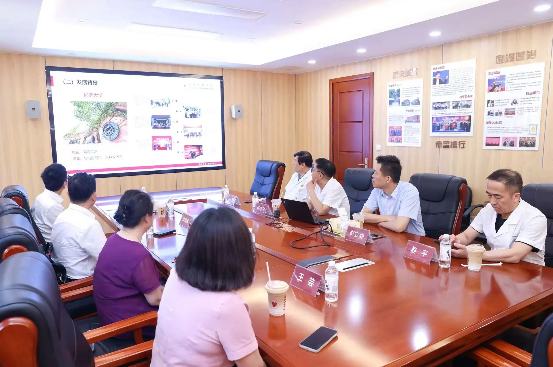 7月15日下午,福州大學(xué)醫(yī)學(xué)院黨委副書(shū)記陳偉斌、附屬省立醫(yī)院副院長(zhǎng)鄭曉春一行在同濟(jì)大學(xué)滬西校區(qū)管委辦主任畢婉蓉、同濟(jì)大學(xué)醫(yī)學(xué)院院辦主任蔡文萍、同濟(jì)大學(xué)滬西校區(qū)管委辦副主任王蕓的陪同下,到上海天佑醫(yī)院參觀交流,天佑醫(yī)院院長(zhǎng)蔡劍飛、總經(jīng)理卓立峰等院領(lǐng)導(dǎo)接待并座談。