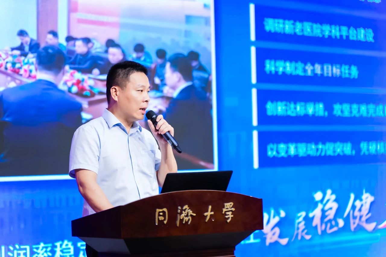 當(dāng)天上午,是大會(huì)的匯報(bào)交流環(huán)節(jié)。9家醫(yī)院院長(zhǎng)和4家子公司總經(jīng)理依次上臺(tái),詳細(xì)總結(jié)匯報(bào)上半年主要工作,分析形勢(shì)與挑戰(zhàn),出實(shí)招、使全力,全面完成2025年工作目標(biāo)和任務(wù)。
