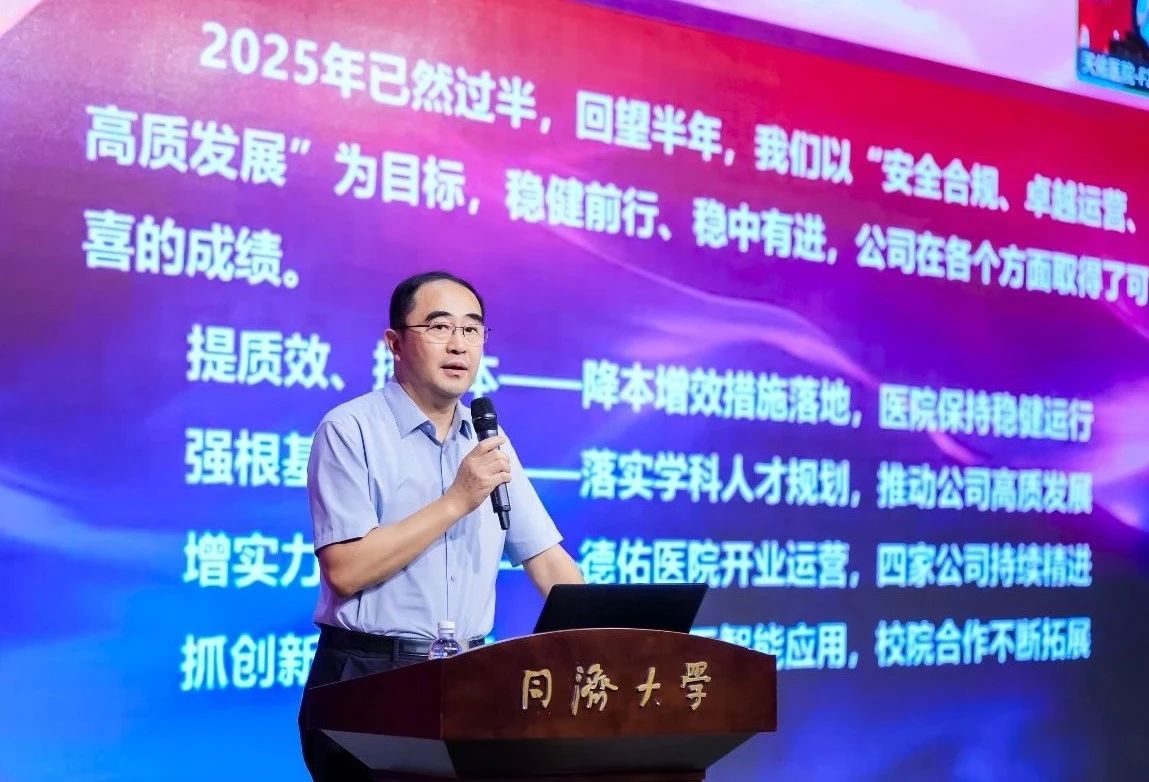 劉軼永總經(jīng)理全面總結(jié)上半年工作,系統(tǒng)部署了下半年工作。他用“發(fā)展穩(wěn)健”“亮點(diǎn)紛呈”“持續(xù)精進(jìn)”高度概括了上半年主要工作。他表示,公司堅(jiān)守“安全合規(guī)、卓越運(yùn)營(yíng)、高質(zhì)發(fā)展”目標(biāo),穩(wěn)健前行、穩(wěn)中有進(jìn),降本增效措施落地,學(xué)科人才規(guī)劃落實(shí),一家新院開(kāi)業(yè)運(yùn)營(yíng),四家公司持續(xù)精進(jìn),人工智能加速應(yīng)用,校院合作不斷拓展,醫(yī)院保持穩(wěn)健運(yùn)行態(tài)勢(shì),公司高質(zhì)發(fā)展成績(jī)可喜。