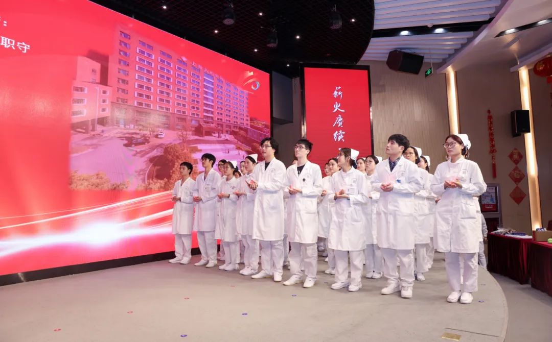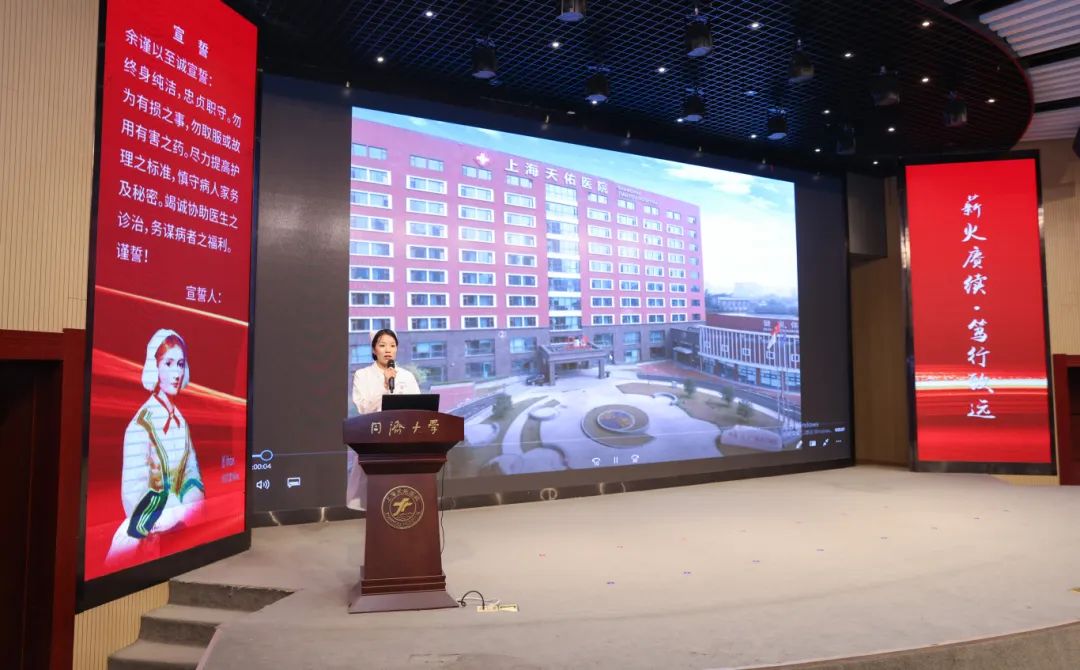 頒獎(jiǎng)結(jié)束后,2025級(jí)的新生們登臺(tái),重溫《南丁格爾誓言》,他們手中的燈光宛如星星之火,既是七年傳承的縮影,更彰顯了天佑護(hù)理人砥礪前行的決心。