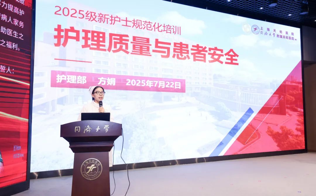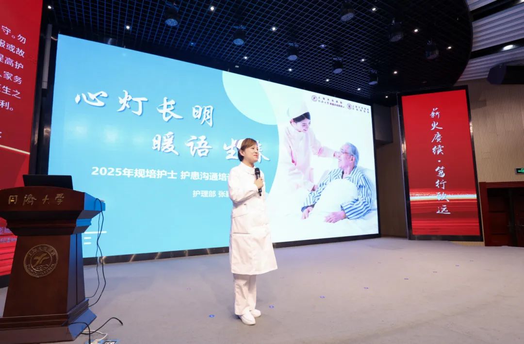 陳奕佳作為2025級(jí)新規(guī)培護(hù)士代表,在發(fā)言中向院領(lǐng)導(dǎo)和帶教老師表達(dá)了深切的感激,感謝他們對(duì)規(guī)培生涯的支持與指導(dǎo),承諾將全力以赴學(xué)習(xí)專業(yè)知識(shí),實(shí)踐人文關(guān)懷,傳承護(hù)理精神。