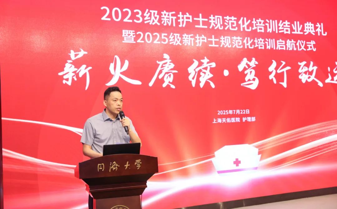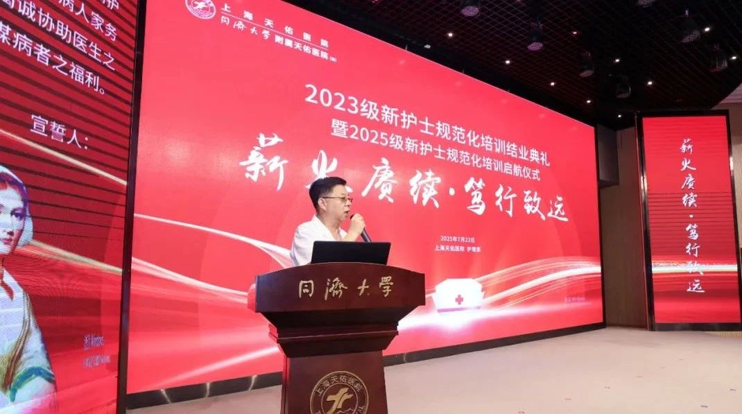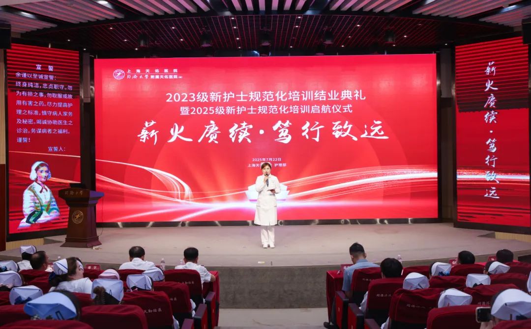 7月22日,上海天佑醫(yī)院2023級(jí)新護(hù)士規(guī)范化培訓(xùn)結(jié)業(yè)典禮暨2025級(jí)新護(hù)士規(guī)范化培訓(xùn)啟航儀式在國(guó)際會(huì)議廳舉行。醫(yī)院院長(zhǎng)蔡劍飛,總經(jīng)理卓立峰,副院長(zhǎng)、護(hù)理部主任劉瑋琳等院領(lǐng)導(dǎo),總護(hù)士長(zhǎng)、護(hù)士長(zhǎng)、帶教老師和規(guī)培護(hù)士150余人參加活動(dòng)。