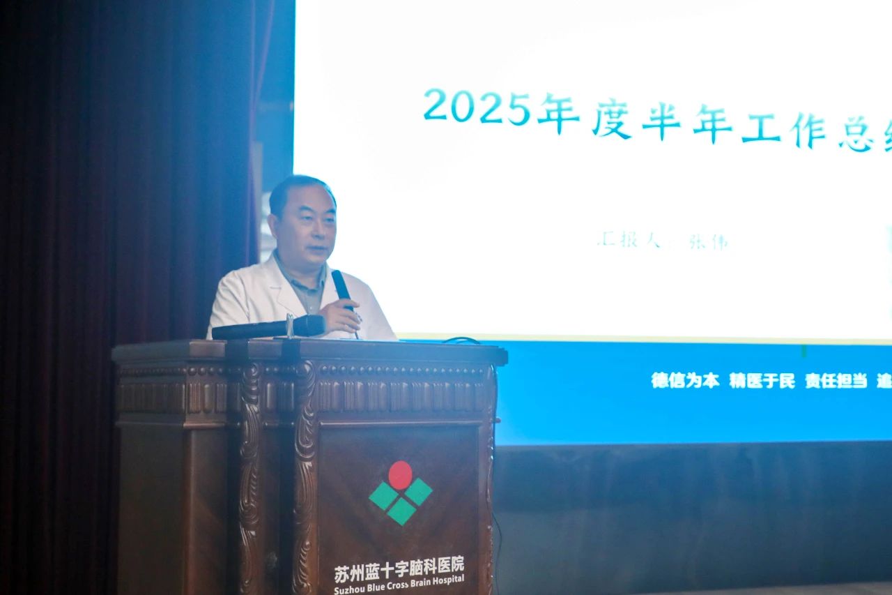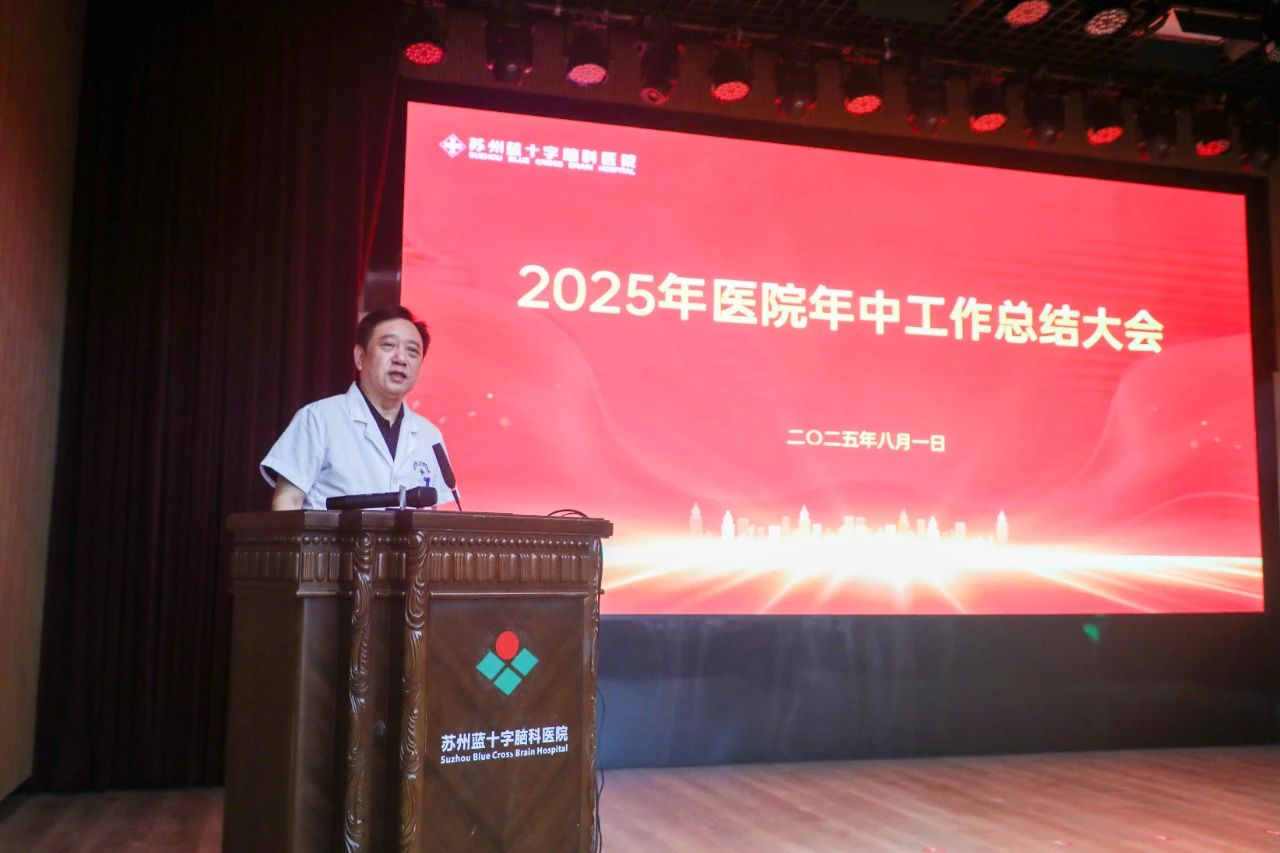 8月1日下午,醫(yī)院正式運(yùn)營(yíng)三周年之際,蘇州藍(lán)十字腦科醫(yī)院召開2025年度年中工作總結(jié)大會(huì)。醫(yī)院院長(zhǎng)徐必生、總經(jīng)理劉金爐等全體領(lǐng)導(dǎo)班子,醫(yī)院所有科室負(fù)責(zé)人、科主任、護(hù)士長(zhǎng)及骨干醫(yī)護(hù)人員齊聚一堂,全面復(fù)盤上半年工作成果,共繪高質(zhì)量發(fā)展新藍(lán)圖。