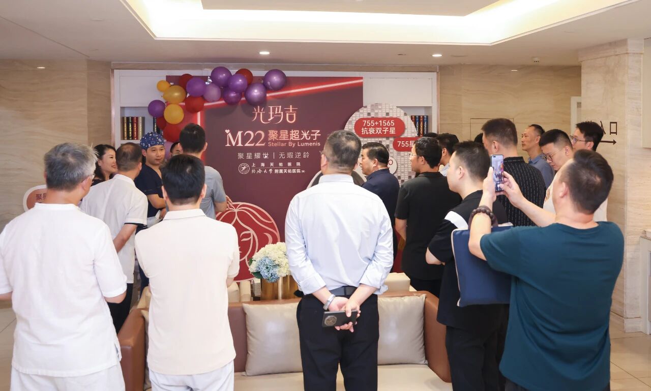 在醫(yī)療美容科,第八代M22 Stellar聚星超光子設(shè)備吸引了大家的關(guān)注。左進(jìn)波博士介紹,該設(shè)備是科醫(yī)人新一代醫(yī)美專用設(shè)備,從2024年12月上市至今,上海地區(qū)僅有8臺,天佑醫(yī)院是其中之一,普陀區(qū)還是第一臺。該設(shè)備正式啟用,標(biāo)志著醫(yī)美在光電治療領(lǐng)域邁入光子抗衰新階段。