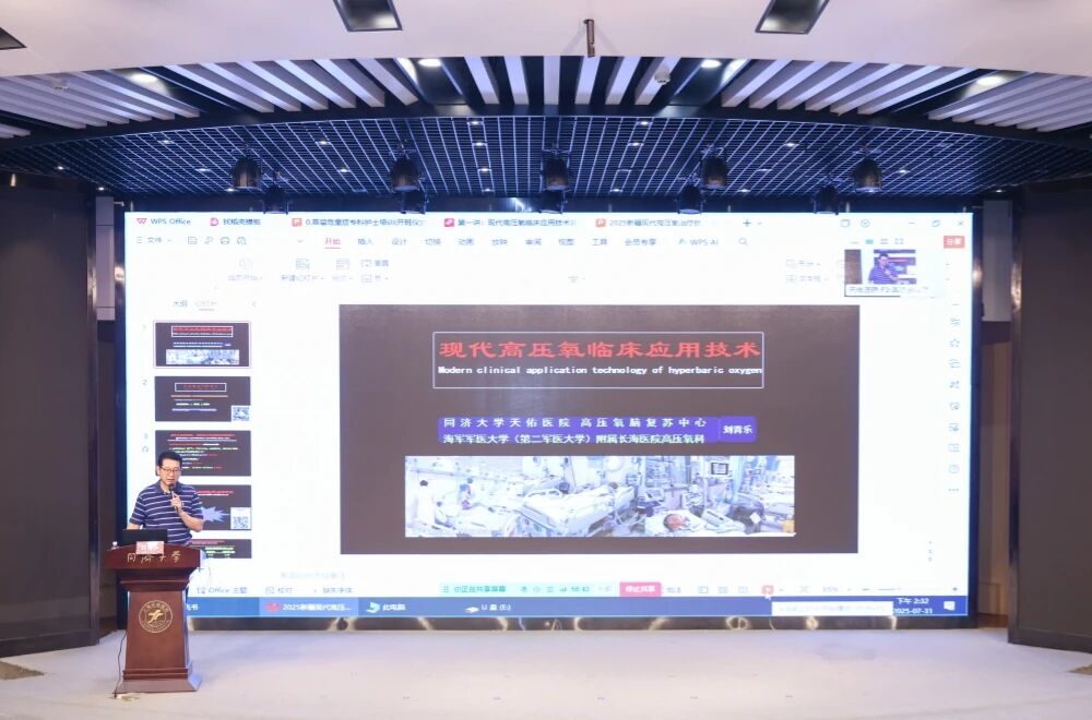 7月31日,上海天佑醫(yī)院高壓氧腦復(fù)蘇主任劉青樂(lè)教授作《現(xiàn)代高壓氧臨床應(yīng)用技術(shù)》專題講座。他從高壓氧定義、高壓氧治療對(duì)機(jī)體的作用、高壓氧臨床應(yīng)用等多個(gè)方面進(jìn)行介紹。