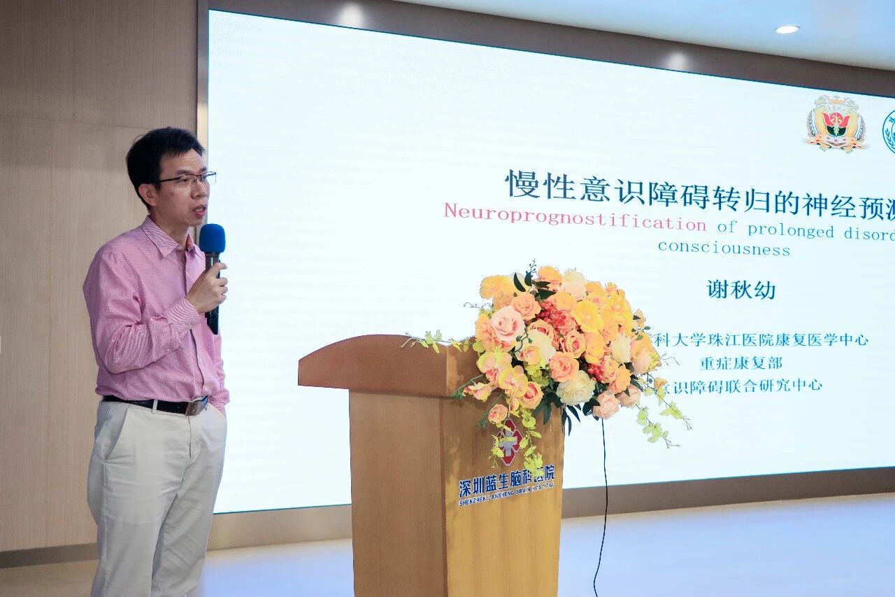 11月2日下午,深圳藍生腦科醫(yī)院昏迷促醒中心揭牌儀式暨慢性意識障礙診療新進展研討會成功舉辦。會議特邀北京天壇醫(yī)院神經(jīng)外科中心意識障礙外科主任、國家重點研發(fā)計劃首席專家、中國神經(jīng)科學學會意識與意識障礙分會主任委員、中國康復(fù)醫(yī)學會顱腦創(chuàng)傷康復(fù)分會主任委員何江弘,南方醫(yī)科大學珠江醫(yī)院康復(fù)醫(yī)學中心重癥康復(fù)部主任謝秋幼,東莞市石排醫(yī)院神經(jīng)外科學科帶頭人孟兵,深圳市第二人民醫(yī)院神經(jīng)內(nèi)科主任徐格林,深圳市第二人民醫(yī)院神經(jīng)外科重癥監(jiān)護病區(qū)主任黃賢鍵,中山大學附屬第八醫(yī)院腦血管病科主任羅斌,深圳市第二人民醫(yī)院神經(jīng)外科癲癇專業(yè)組負責人姚晨,深圳市人民醫(yī)院龍華分院ICU主任張華東,深圳市龍華中心醫(yī)院神經(jīng)外科主任云強等國內(nèi)神經(jīng)外科、神經(jīng)內(nèi)科及重癥醫(yī)學領(lǐng)域知名專家,共同探討慢性意識障礙診療的最新進展,并見證醫(yī)院昏迷促醒中心的正式成立。