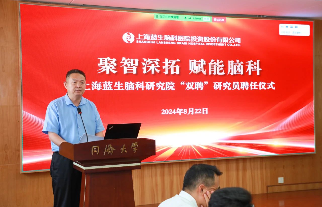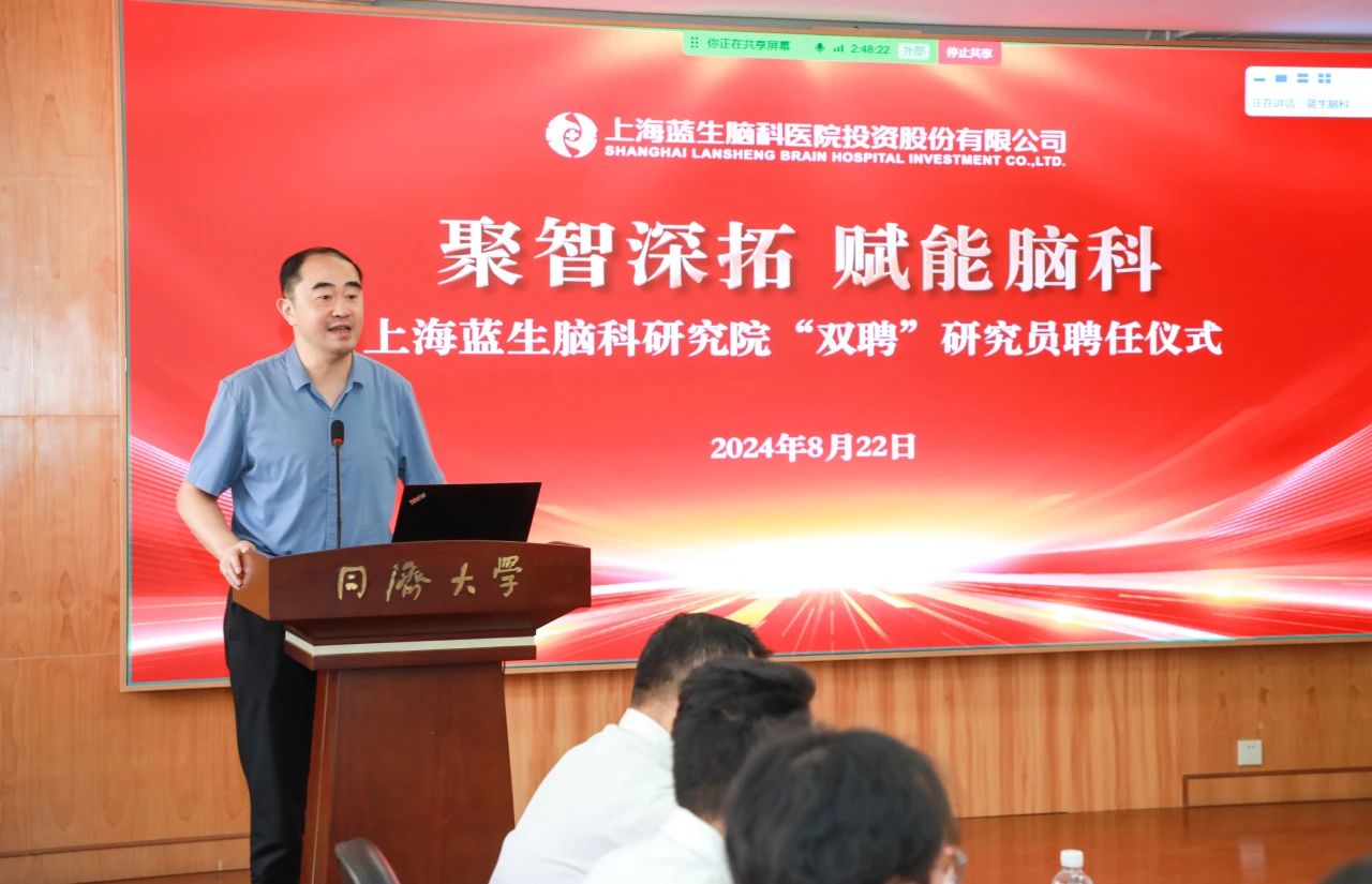 8月22日,公司在同濟(jì)大學(xué)附屬天佑醫(yī)院舉行“雙聘”研究員聘任儀式,標(biāo)志著公司實(shí)質(zhì)性轉(zhuǎn)向“臨床+科研”雙輪驅(qū)動(dòng)發(fā)展模式。公司旗下醫(yī)院“雙聘”研究員、科研工作分管領(lǐng)導(dǎo)和部門(mén)負(fù)責(zé)人通過(guò)線上線下結(jié)合的形式參加。藍(lán)生腦科研究院執(zhí)行院長(zhǎng)殷作明博士主持。