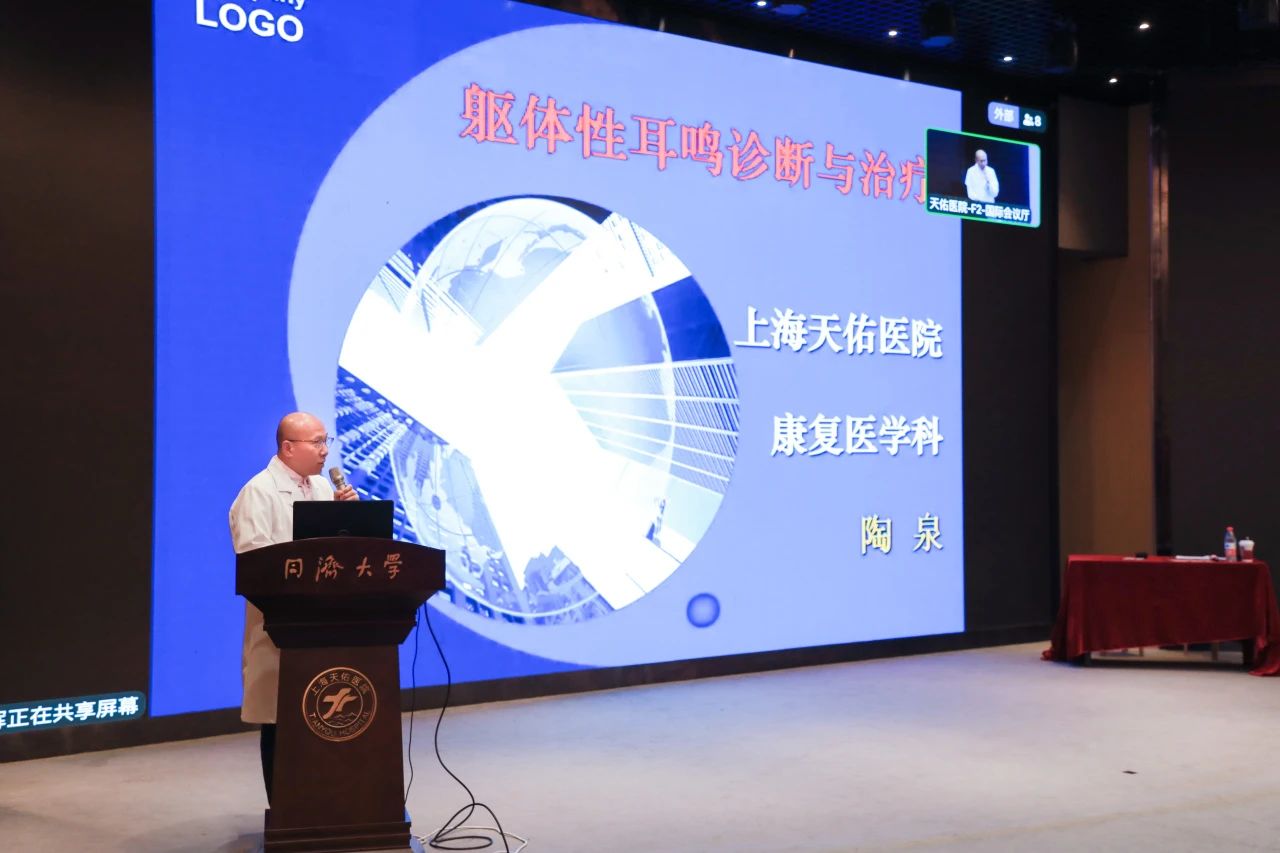 天佑醫(yī)院康復(fù)科陶泉主任圍繞《軀體性耳鳴的診斷與治療》這一主題,結(jié)合實(shí)際案例,講述了軀體性耳鳴的機(jī)制、評估、診斷與治療。他介紹:“上世紀(jì)80年代醫(yī)學(xué)家發(fā)現(xiàn)一種耳鳴與頭頸部肌肉緊張有關(guān),一旦肌緊張得到緩解,耳鳴隨之減輕或消失,這種耳鳴稱為軀體性耳鳴。軀體性耳鳴通??煞譃轭i源性、顳下頜源性和肌筋膜源性等。”陶泉主任還講解了軀體性耳鳴的病因、臨床表現(xiàn)以及特征等,提出軀體感覺和聽覺系統(tǒng)相互作用生理機(jī)制是軀體性耳鳴產(chǎn)生和改變的原因。