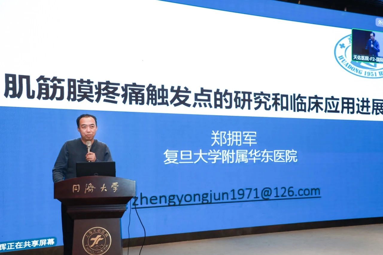 復(fù)旦大學(xué)附屬華東醫(yī)院康復(fù)科鄭擁軍主任作《肌筋膜疼痛觸發(fā)點(diǎn)的研究和臨床應(yīng)用進(jìn)展》主題分享。“肌筋膜觸發(fā)點(diǎn)是骨骼肌肌肉能夠激惹疼痛的某一特定位置,這個位置通常可以摸到一個疼痛結(jié)節(jié)和繃緊肌纖維痙攣帶,觸壓時有疼痛加重和局部肌肉顫搐以及可能引起的遠(yuǎn)處牽涉痛;常有交感現(xiàn)象、易疲勞、睡眠障礙等一系列以疼痛為主的癥候群。”他介紹了肌筋膜觸發(fā)點(diǎn)的病理生理機(jī)制、引起肌筋膜觸發(fā)點(diǎn)的因素等,還分享了課題組在觸發(fā)點(diǎn)治療方面的研究進(jìn)展、觸發(fā)點(diǎn)近年基礎(chǔ)和臨床研究進(jìn)展。