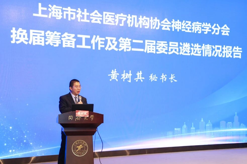 第一屆神經(jīng)病學(xué)分會(huì)副主委兼秘書(shū)長(zhǎng)、天佑醫(yī)院神經(jīng)內(nèi)科主任黃樹(shù)其作神經(jīng)病學(xué)分會(huì)換屆籌備工作及第二屆委員推選情況報(bào)告,他從神經(jīng)病學(xué)分會(huì)換屆的背景、換屆籌備等方面進(jìn)行了詳細(xì)介紹。