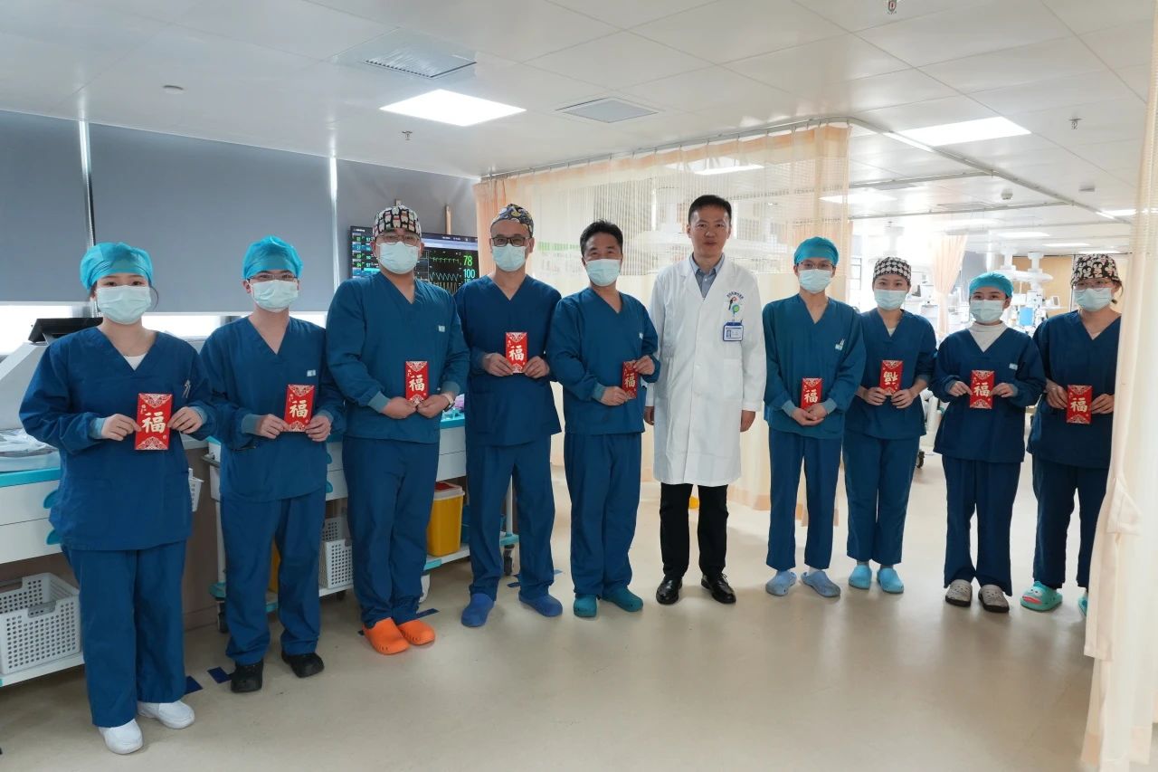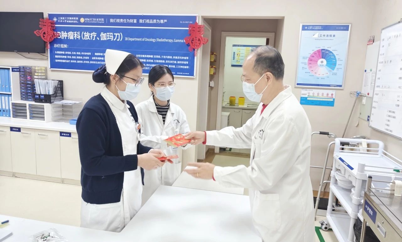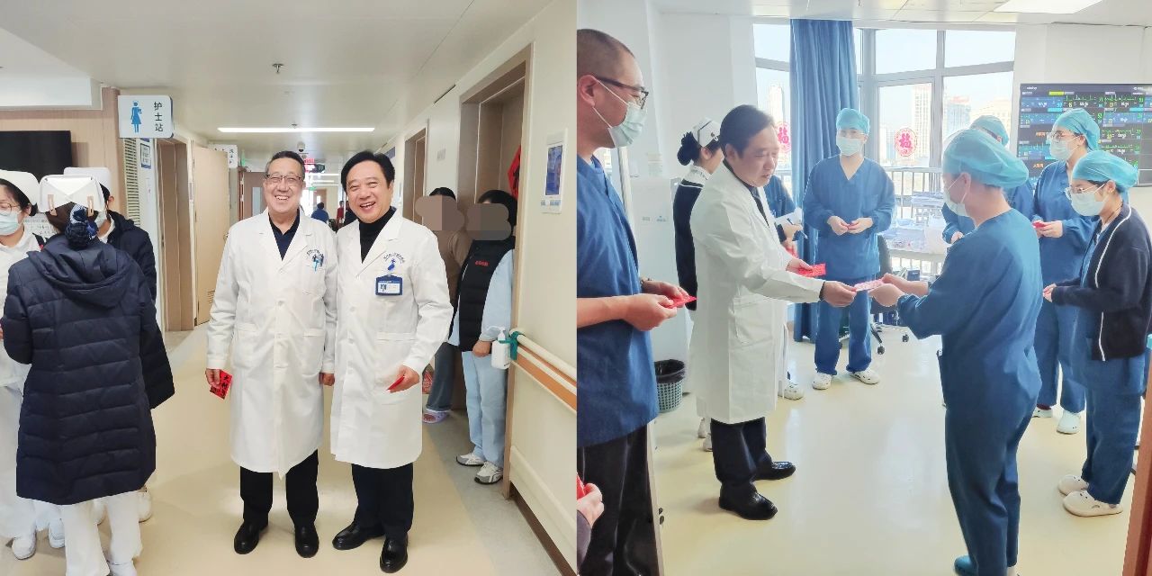 上海天佑醫(yī)院蔡劍飛院長、孫凱副總經(jīng)理和行政總值班人員一大早就來到臨床一線慰問,為值班人員送上禮盒和新年紅包,向他們致以新春的問候和美好的祝福。