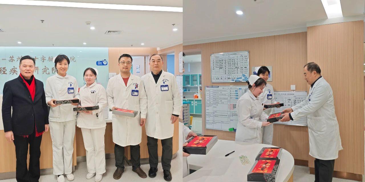 蘇州藍十字腦科醫(yī)院徐必生院長、張偉副院長、陸為民副總經(jīng)理與醫(yī)護人員、患者共度春節(jié)。懷揣精心準備的紅包,醫(yī)院領導穿梭于各個病區(qū),臉上洋溢著親切笑容。每到一處,都與患者輕聲交談,關切詢問病情,送上真摯祝福。
