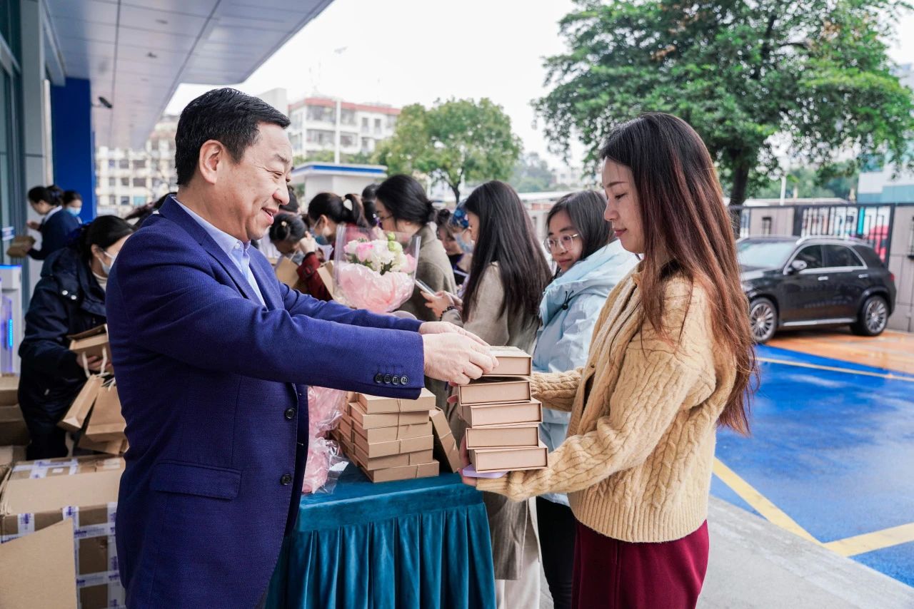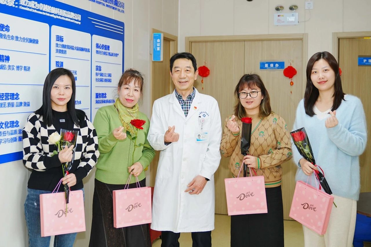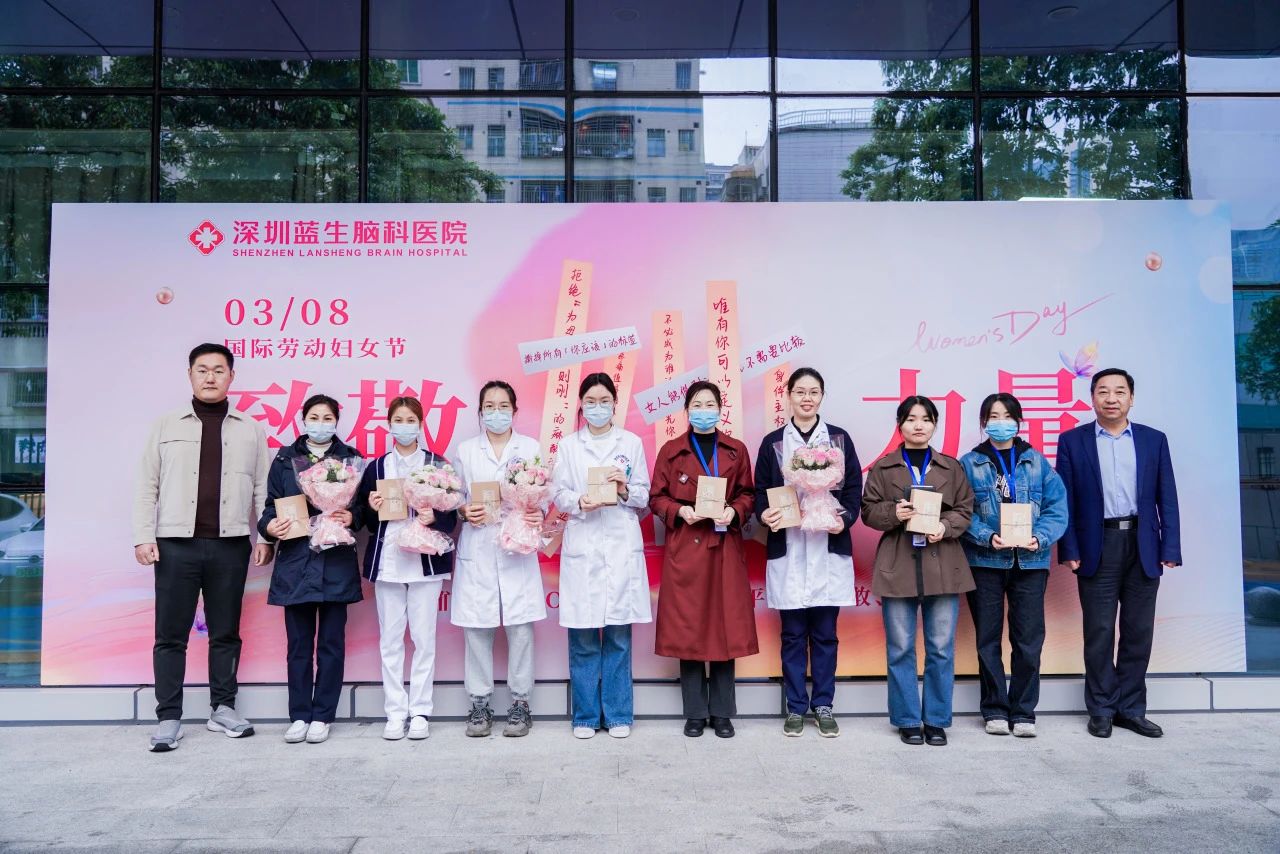 7日,深圳藍生腦科醫(yī)院領(lǐng)導(dǎo)在住院大樓前,為340余名女員工送上節(jié)日禮品和鮮花,并送上溫馨的節(jié)日祝福與親切問候。