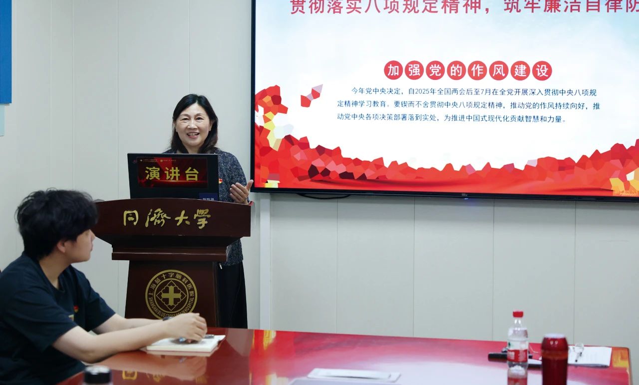 黨支部副書記趙宇蘭作總結(jié)發(fā)言,指出,中央八項(xiàng)規(guī)定精神與黨員日常工作生活息息相關(guān),廉潔自律、潔身自好是醫(yī)療工作者的應(yīng)有之為,要始終銘記為人民服務(wù)的初心使命。她強(qiáng)調(diào),中央八項(xiàng)規(guī)定精神是長期有效的鐵規(guī)矩、硬杠桿,全院黨員干部要深學(xué)細(xì)悟習(xí)近平總書記關(guān)于加強(qiáng)黨的作風(fēng)建設(shè)重要論述,將中央八項(xiàng)規(guī)定精神內(nèi)化于心、外化于行,筑牢紀(jì)律防線,常抓不懈、久久為功,在新征程上以好作風(fēng)好形象展現(xiàn)新?lián)?dāng)、新作為,推動(dòng)醫(yī)院各項(xiàng)工作高質(zhì)量發(fā)展。