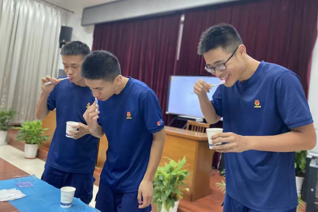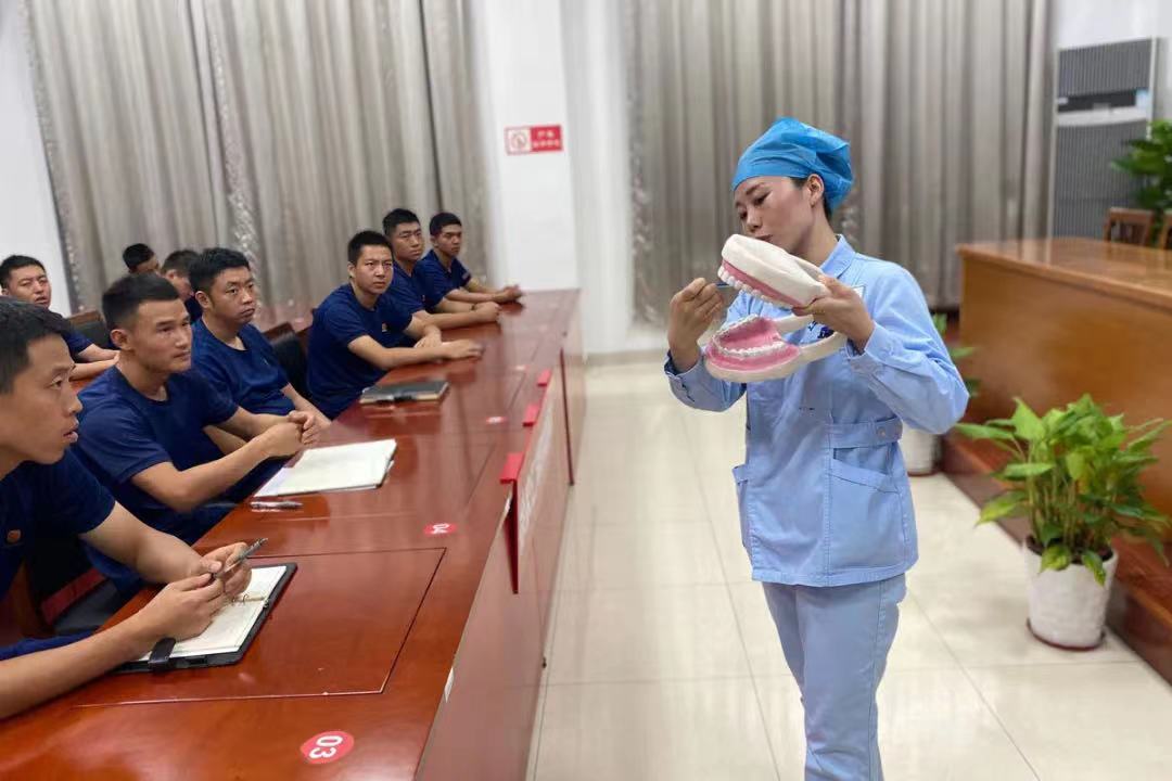 簽約儀式結(jié)束后,醫(yī)院“藍生健康行”講師團成員、口腔科護士骨干王秋實為與會消防指戰(zhàn)員作口腔健康科普講座。