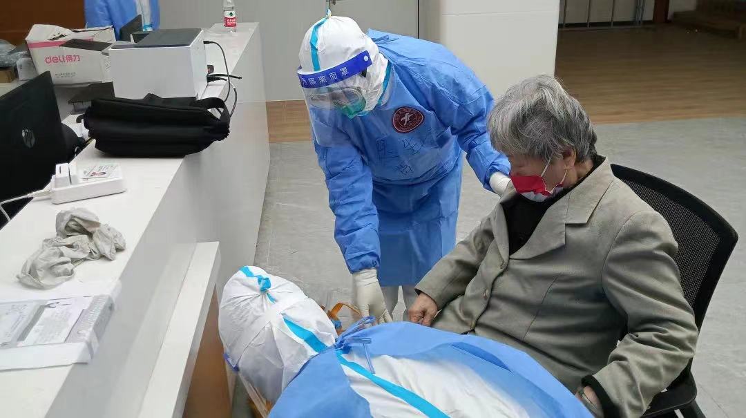 “4月22日晚,一位患者突發(fā)腦血管意外,需要馬上轉往定點醫(yī)院就治,蘇圓圓醫(yī)生主動請纓,隨車將患者安全送往定點醫(yī)院。”據(jù)肖建主任介紹,在方艙醫(yī)院的日子里,蘇圓圓醫(yī)生凡事總是沖在最前面,主動承擔臟活累活。心理素質(zhì)過硬,遇到難題總是勇敢沖鋒在前,進步特別快。