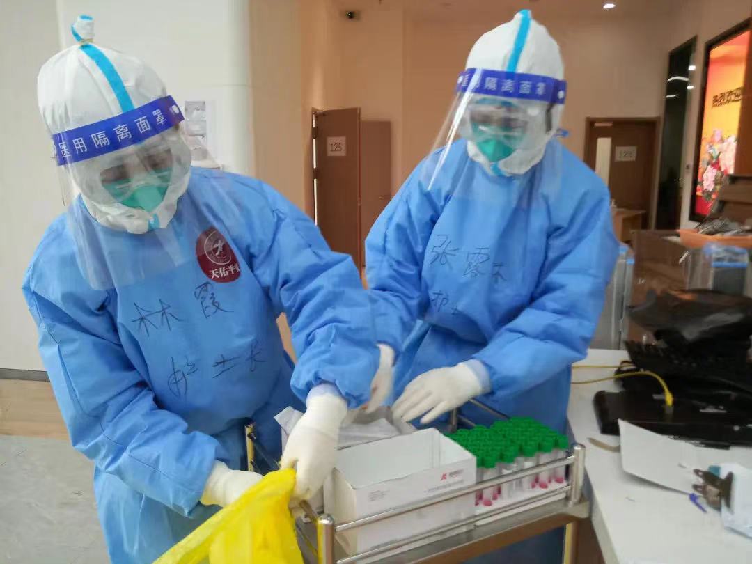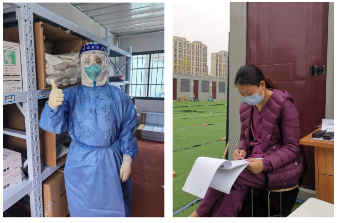 “來到這里(方艙)后發(fā)現(xiàn)生活環(huán)境比較艱苦,但是看到肖建主任、王坤偉醫(yī)生作為老黨員,時刻沖鋒在前,我非常觸動并時刻提醒自己要像黨員一樣去戰(zhàn)斗。”林霞說,開始她也有些緊張,快速調(diào)節(jié)好心態(tài)后,現(xiàn)在已能全身心投入工作中。作為副隊長,為了緩解護理隊員的壓力,林霞護士長堅持每天陪大家一起進艙。由于艙內(nèi)不能帶手機,林霞護士長每天手握呼機,及時與隊員溝通,解決各類突發(fā)事情,為姐妹們加油鼓勁。夜間休息時呼機也開著放在枕邊,保證大家能隨時找到她。