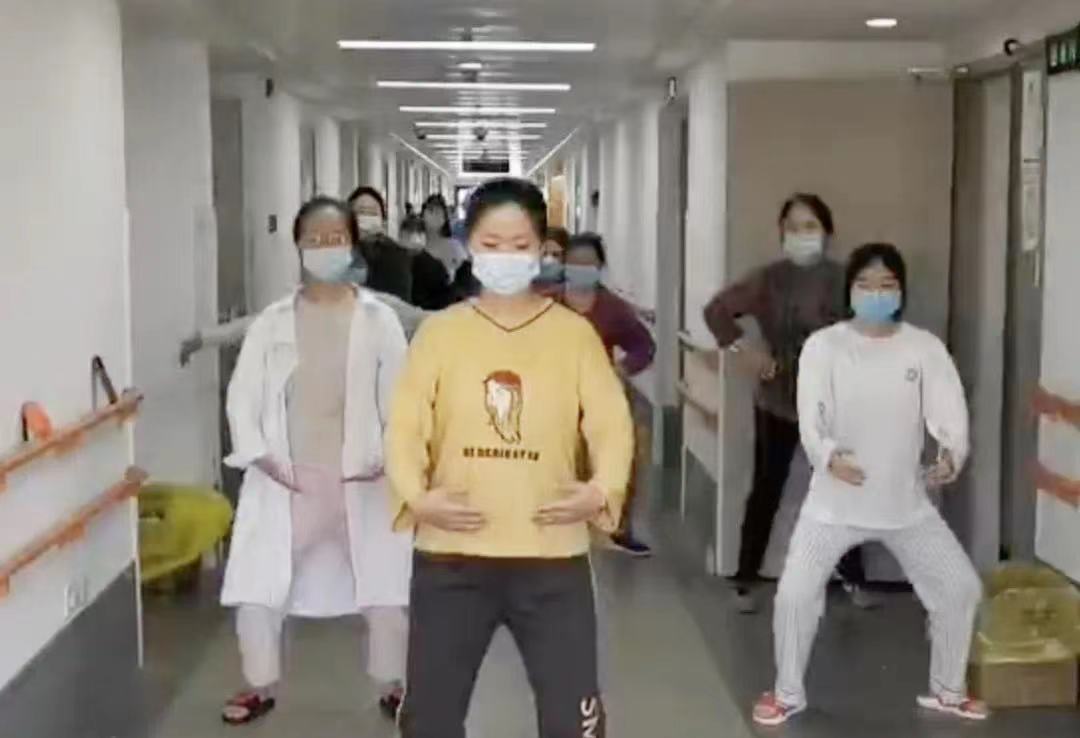 肖建書記介紹,方艙醫(yī)院的護理工作并不簡單,總結起來就是工作量大、事情繁雜、風險也要比醫(yī)院大。一整套防護服穿在身上,工作起來至少六個小時不停歇,不能吃飯喝水,不能上廁所,除了為患者提供常見的醫(yī)療服務外,還要做好病人的生活護理和心理疏導,緩解他們的情緒。很多老人們在艙里的時間長了,會有些焦慮,王露露就和大家一起陪病人聊天,王露露還把康復醫(yī)學科的“八段錦”帶進方艙,稍有空閑就傳授這一“絕技”。