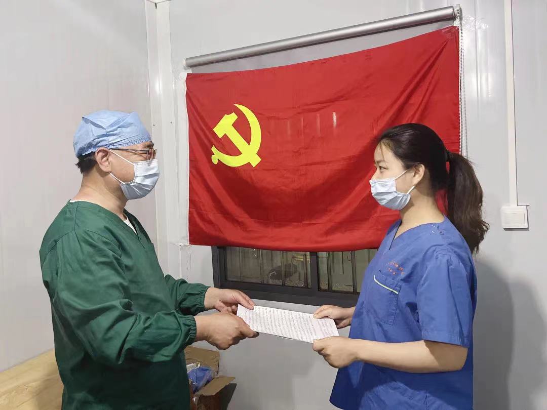 “上海疫情防控正處在攻堅階段,我親眼看到了身邊黨員同事沖鋒在前,他們凡事‘我先上’的精神深深地打動了我。作為天佑醫(yī)療隊的一員,我想用實際行動向黨組織靠攏,請黨組織在這場疫情阻擊戰(zhàn)中考驗我……”遞交入黨申請書時,蘇圓圓醫(yī)生堅定地說。
