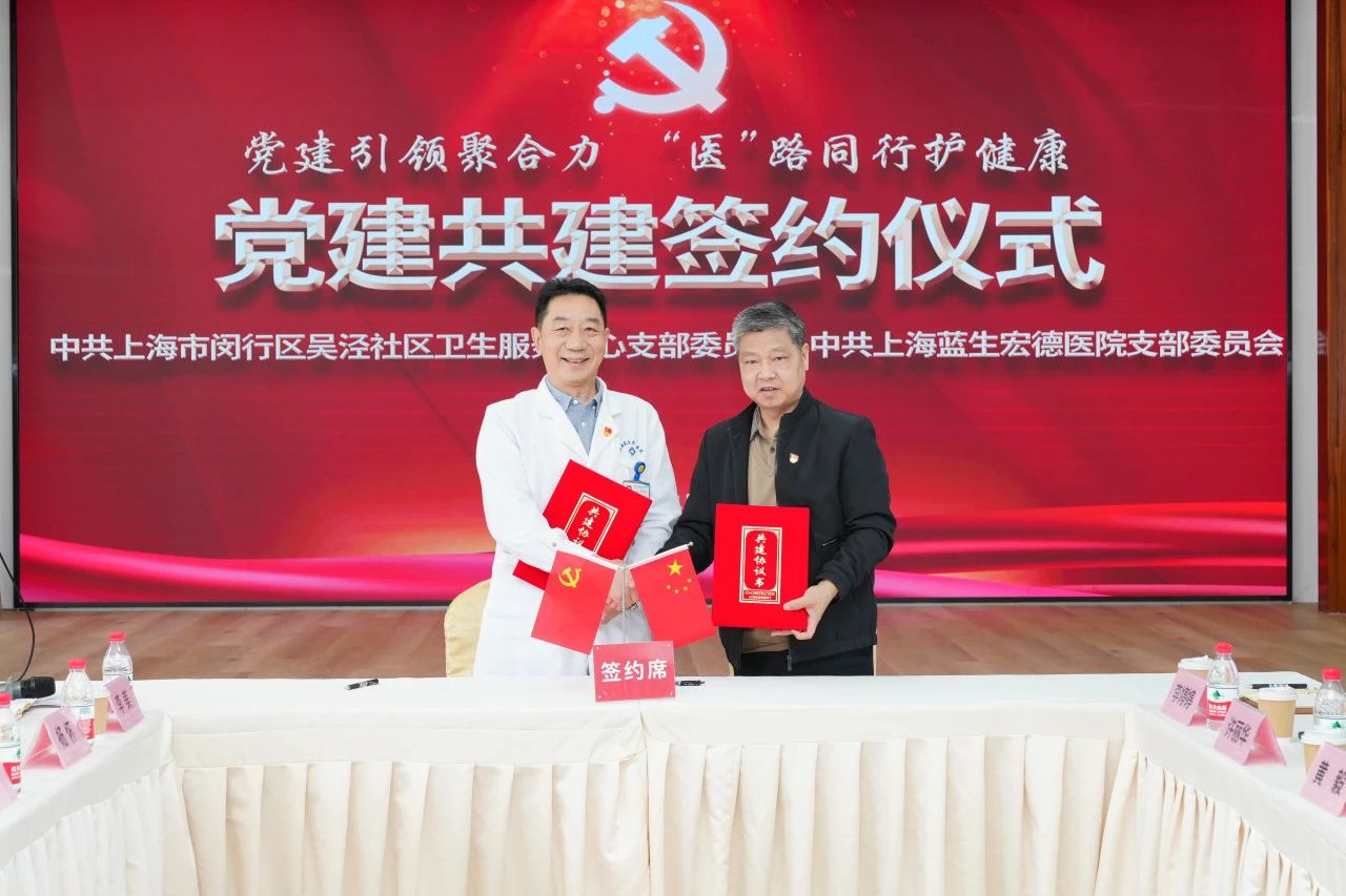 簽約儀式上,吳涇社區(qū)衛(wèi)生服務(wù)中心黨支部書記郭西堯與上海藍(lán)生宏德醫(yī)院黨支部書記周宏宇對(duì)各自的支部情況做了介紹,就結(jié)對(duì)共建內(nèi)容進(jìn)行了討論溝通。