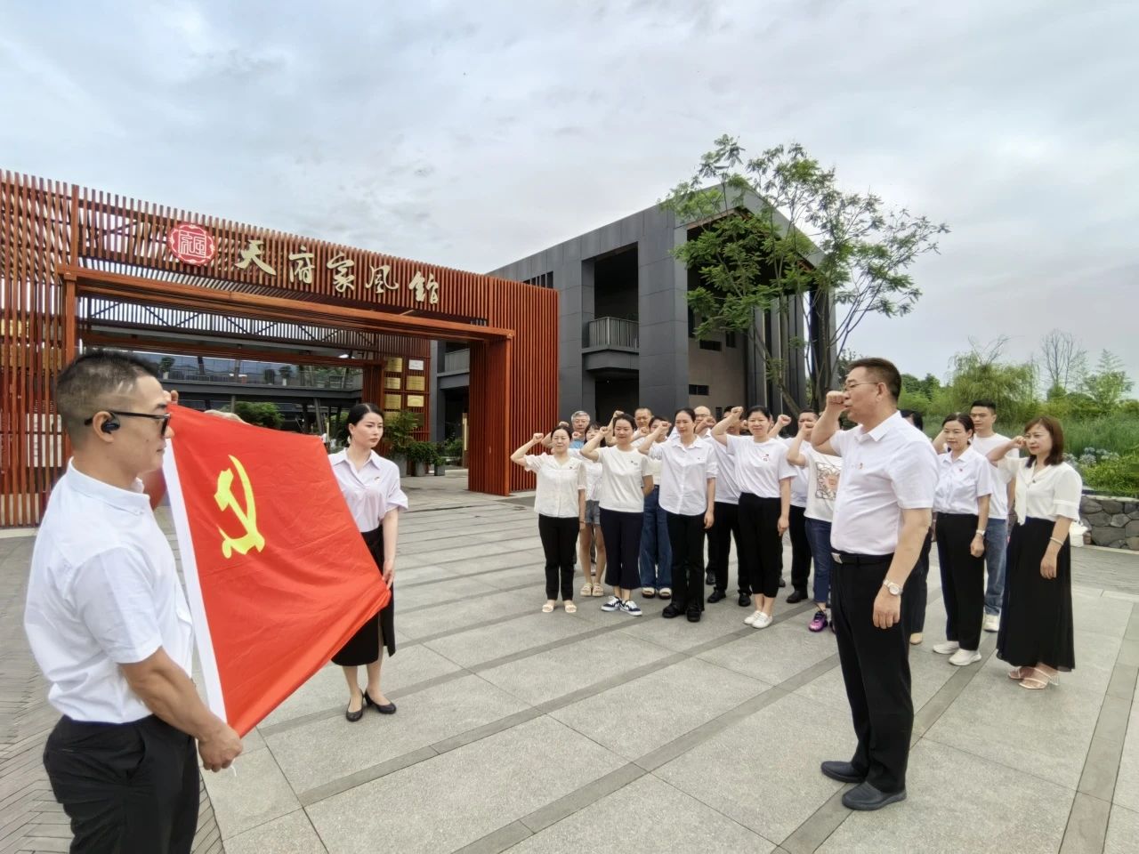 “我志愿加入中國共產(chǎn)黨,擁護黨的綱領(lǐng)……隨時準備為黨和人民犧牲一切,永不叛黨”。全體黨員在天府家風館廣場前高舉右手,面向鮮紅的黨旗,莊嚴宣誓。從重溫入黨誓詞中,進一步堅定理想信念,牢記初心使命,鏗鏘有力的聲音表達出身為中國共產(chǎn)黨黨員的責任感和使命感,展現(xiàn)出為黨的事業(yè)奮斗終生的堅定決心和執(zhí)著追求。