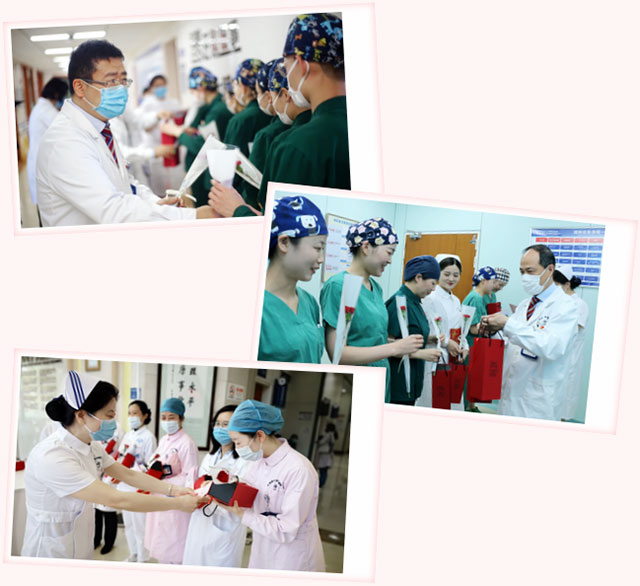 表彰結束了,院領導們又立即來到臨床一線各個科室,慰問辛勤工作的“白衣天使”,送上節(jié)日的祝福與慰問禮物。