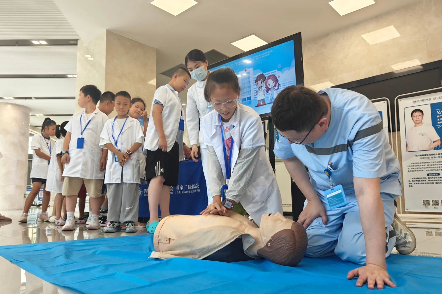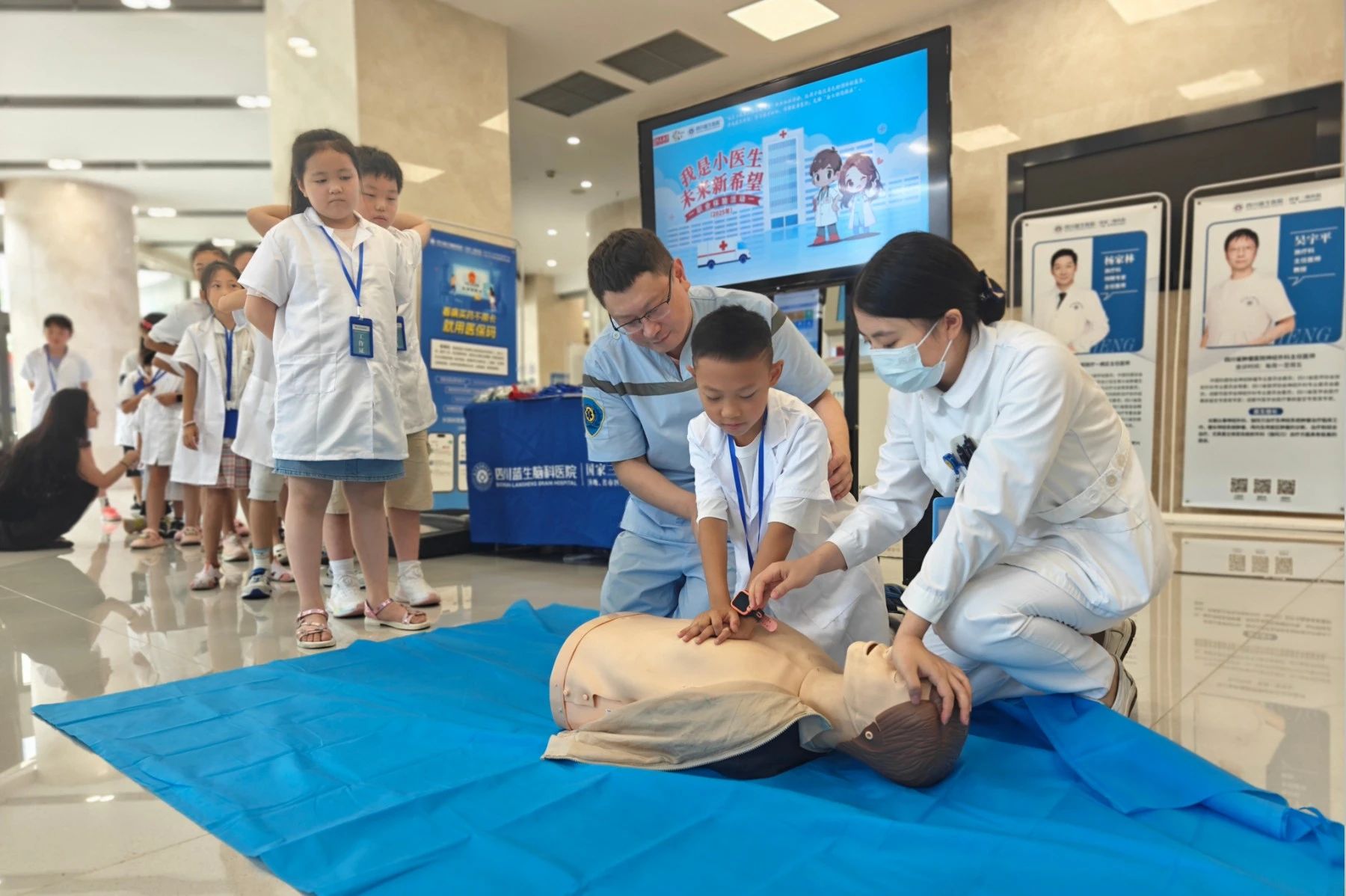 7 月 9 日,由成都市金牛區(qū)教育局、成都市金牛區(qū)關(guān)心下一代工作委員會(huì)悉心指導(dǎo),成都市金牛區(qū)學(xué)校安全應(yīng)急指導(dǎo)中心(金牛區(qū)社區(qū)教育學(xué)院)、成都市家長學(xué)校金牛分校主辦,四川藍(lán)生醫(yī)院承辦的 2025 年暑期 “我是小醫(yī)生,未來新希望” 藍(lán)生研學(xué)系列活動(dòng)熱鬧開啟。20余名小朋友懷揣好奇與夢想,在這里探尋醫(yī)學(xué)奧秘、學(xué)習(xí)健康知識、體驗(yàn)醫(yī)者日常。