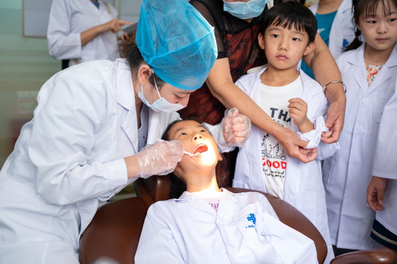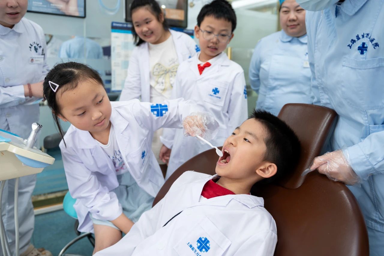 在醫(yī)護(hù)人員的悉心指導(dǎo)下,身著迷你工作服的孩子們走進(jìn)診室,瞬間進(jìn)入角色,變身為“小牙醫(yī)”。他們兩兩一組,互相檢查牙齒,用口鏡仔細(xì)觀察“患者”的牙齒狀況,并模仿醫(yī)生的口吻給出專業(yè)的建議。“這顆牙縫里有食物殘?jiān)?,要好好刷牙哦?rdquo;“這里發(fā)黑了,可能是蛀牙。”孩子們?cè)诮巧D(zhuǎn)換中不僅消解了對(duì)牙科的恐懼,還從實(shí)踐中掌握了護(hù)齒技能,更在心中種下了成為一名醫(yī)生的夢(mèng)想種子。