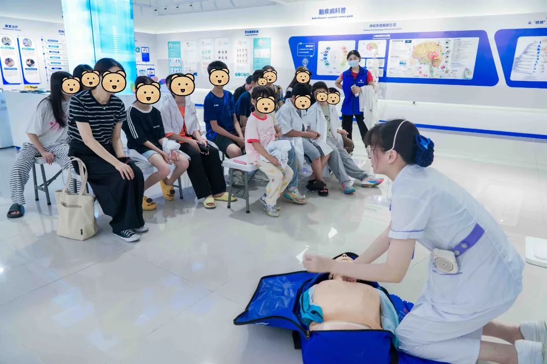 腦科普展館知識講解完畢后醫(yī)院還貼心的為小朋友們準(zhǔn)備了一場急救培訓(xùn),通過對心肺復(fù)蘇、海姆立克急救法的理論講解、實操演練等,幫助小朋友們掌握急救知識,關(guān)鍵時刻能夠做到臨危不懼,挽救他人的生命。