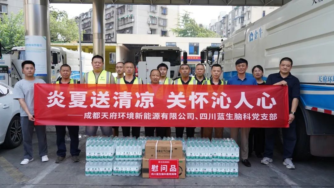 環(huán)衛(wèi)工人是城市的 “美容師”,他們不畏高溫炙烤,不分晝夜用辛勤與汗水換來城市的潔凈容顏。此次慰問組走訪成都天府環(huán)境新能源有限公司,將清涼物資一一送到環(huán)衛(wèi)工人手中,感激他們在烈日下的默默付出,希望這份清涼能為他們撐起一片夏日綠蔭。